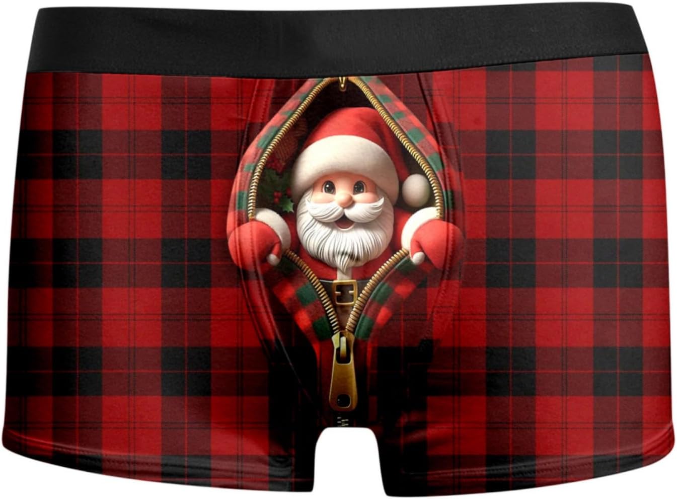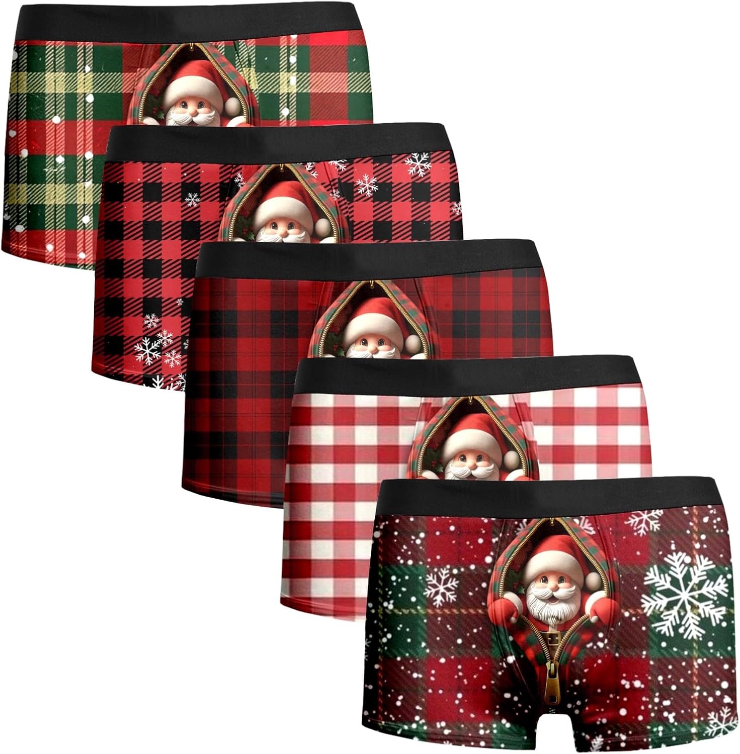 When you need to on high-quality christmas underwear, trust our team of experts. Our team is dedicated to designing and manufacturing fashionable and comfortable underwear for men. Create stylish and fun Christmas designsChristmas Boxer Briefs for Men Pack Funny Cute Santa Graphic Holiday Mens Underwear No FlyComfort & Breathability1.Cloud-Like Softness: Mens christmas underwear,Made with high-quality fabrics that gently hugs your curves2.All-Day Freshness: Mens christmas boxer briefs,Moisture-wicking keeps you cool and dry, while breathable cotton gussets promote healthFlawless Invisible Fit1.Stay-Put: Boxer briefs for men pack,Elastic leg openings prevent rolling or shifting during movement.2.Flexible Waistbands: The elastic waistband is made of soft, highly elastic, and comfortable material, providing you with the comfort you need and avoiding any feeling of constriction.Thoughtful Design For Real Life1.Durable Quality: Reinforced stitching withstands daily wear and frequent washing without losing shape.2.Easy Care: Machine washable fabrics,no shrinking and fading, maintaining like-new softness wash after wash.Size Inclusivity & Perfect FitTrue to Size: Detailed size chart with hip/waist measurements ensures the right fit for every body.Please refer to the size chart before purchasing to ensure you get the right size.Perfect For: Daily wear Workouts Holiday Christmas Travel