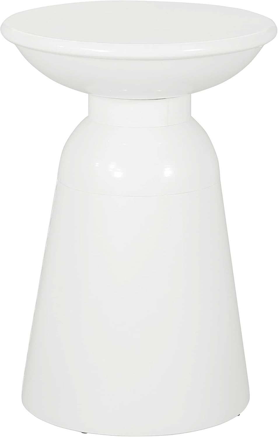 Offer your outdoor space a staple piece that will inspire any lounge area with abundant style that is both fun-loving and sophisticated. With a sleek, modern pedestal structure and flared design, this end table is an excellent sidekick to your existing outdoor furniture, perfect for holding a tray of snacks or a fresh pitcher of lemonade. The frame of this side table features a circular motif with a smooth finish, making this piece great for any area in need of something new.Material: IronMultiple Finish OptionsAssembly RequiredLarge Dimensions: 15.00 inches deep x 15.00 inches wide x 20.75 inches highWeight Capacity: 12 lbs