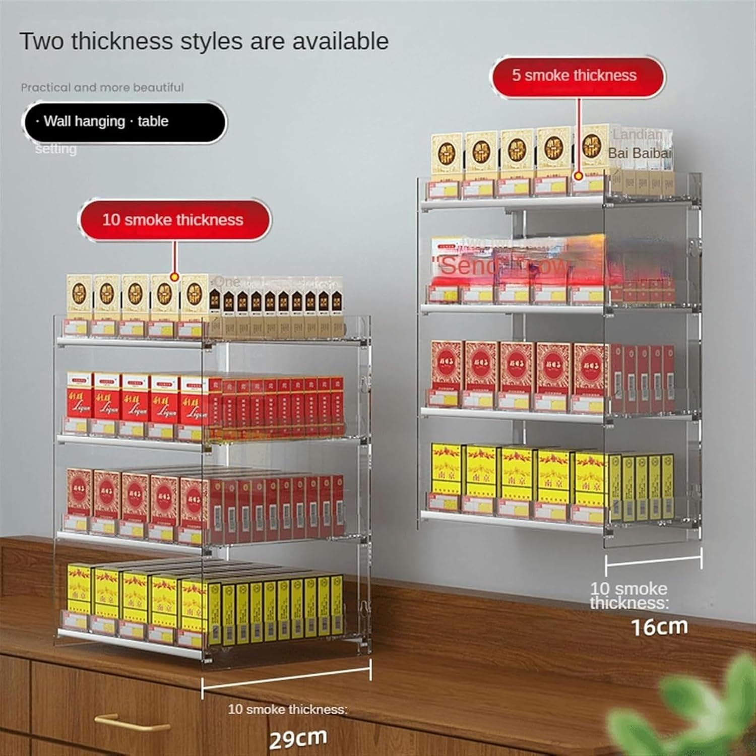 Features1.Acrylic Automatic Tobacco Display Stand for Convenient Product Display and Easy Replenishment2.Ideal for Shops, Malls, Canteens, Supermarkets, and More3.Easy to Clean,not easy to damage4.Multiple Racks can be Combined for a Multi-Purpose DisplayProduct name: Automatic Tobacco Display StandColor:transparentMaterial: Acrylicsize (length x width): length x width x heightCapacity: 100-1260 pack cigarette cigaretteFunction: with an automatic cigarette machineInstallation: Easy to install and disassembled moving suspension storageWe provide free installation tools and instructions. You need to install it yourself, which is very simple.Packing list: Cigarette Holders*1labelSwellingCrossScrewdriverHanging wall fixing