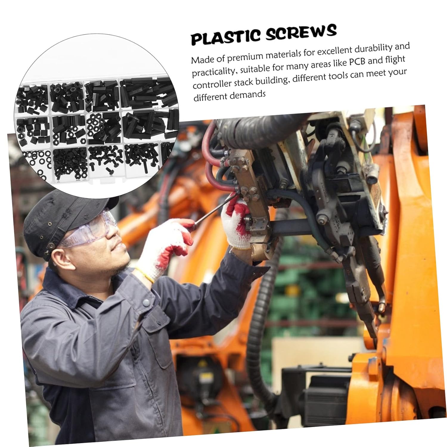 Package Include 60 x spacers(6mm+6mm) 60 x spacers(10mm+6mm) 60 x spacers(15mm+6mm) 60 x spacers(20mm+6mm) 60 x spacers(6mm) 60 x spacers(10mm) 60 x spacers(15mm) 60 x spacers(20mm) 240 x nylon nuts 80 x nylon washers 80 x screws(6mm) 80 x screws(12mm) 80 x screws(20mm) Features -Material:Nylon assorted fastening nuts -Size:17.30X9.50X2.00cm/6.80X3.73X0.79in nylon screw and nuts -Color:Black nuts assortment -Applied for PCB and flight controller stack building, motion sensor mounting, board building, of multiple uses nylon nut kit. - , with stability and fastening, can much to your work assorted screws and nuts. -The assortment come with nylon spacers, screws, nuts and stand-off, satisfy your demands very machine screws. -Strong and sturdy threaded design of the nylon spacer, very easy to use with peace of mind, not easy to skid screws. -Adopting nylon material, these head screws and nuts are , can withstand long servicing fastening screws.Goods Informationscrews and nuts Are of professional and convenient screw and nut kits? Our products can be your wonderful choice. head screw Adopting for durability and practicality, proper for many areas like PCB and flight controller stack building, can better satisfy your requirements