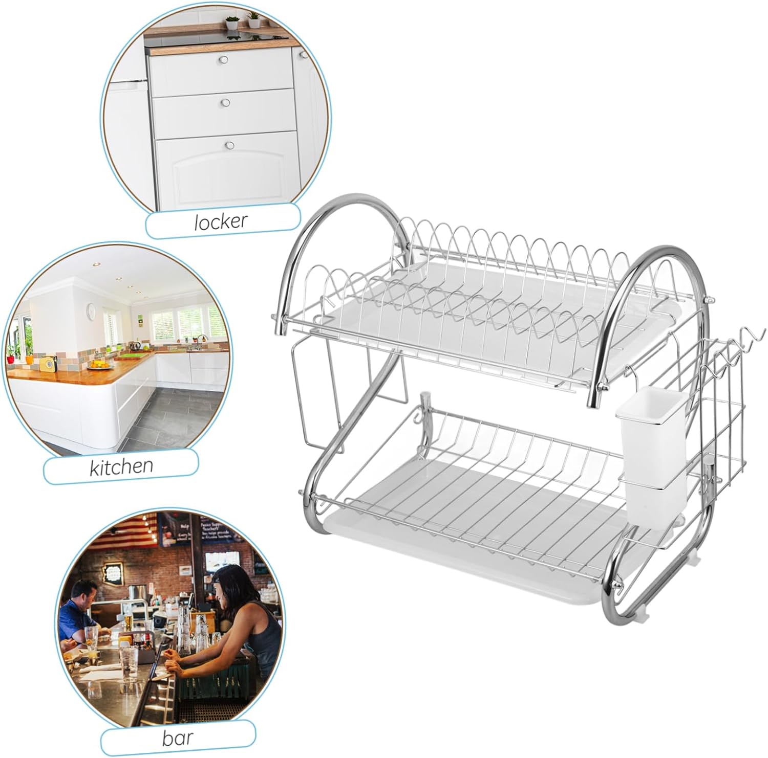 Package List 1 x Storage Rack Features - Material: Stainless Steel Dish Drain Rack. - Color: Silver. - Size: Approx. 36.5x24.5x38.5cm/14.4x9.6x15.2 inch. - for home, restaurant, buffet, hotel and more Rack for Kitchen. - Simple design with fine workmanship, also can be a decoration for your kitchen Finishing Stand. - Help keeping your counter top, cabinet tidy and save space Kitchen Storage Shelf. Double Layer Storage Stand - Enough space to organize kitchen cutlery, a pretty tool for your kitchen. - The storage holder is made of material, and heavy duty.Goods InformationFinishing Stand Enough space to organize kitchen cutlery, a pretty tool for your kitchen.Double Layer Storage Stand It's easy to use with .Rack for Kitchen The creative design with sturdy structure will its practicability and popularity among cutlery rack in the kitchen use.Dish Drain Rack This item is manufactured with which is not easy to break
