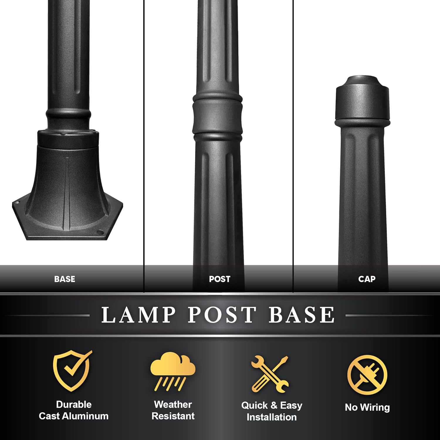 Lamp post base for item #'s - SML556 or SLP227 Solar Lamp Fixtures. Post only, light not included. For compatible Solar Lamp head, see our Hampton (Model #SL9227) or Eleganté (Model #SML556) Solar Lamps.