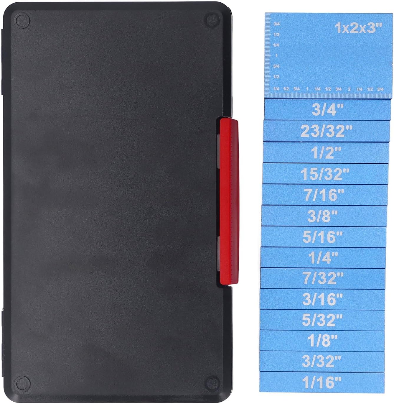 1. Easy Adaptability: Set the heights of fences, leaves and other tools quickly to achieve hundreds of measurements easily. and more accurate than using combined squares. 2. at its finest: Each solid aluminum frame block is 100mm long, with precise grouping sizes from 1/16 inch to 1x2x3 inch. 3. Sturdy and Protective: Anodized aluminum blocks protect your cutters and saws from dents, ensuring incisive cutting edges. engraved markings will not fade. 4. Clear and Convenient: engraved labels on each block ensure easy reading. Comes with a suitable case for transportation and storage. 5. High : Achieve when setting table saw or router blades with accurate measurements to ±0.001 inch. 1/32 inch increments make any measurement accurate from 1/16 inch to 1 inch. Specification: Item Type: Configuration Blocks Material: Aluminum Alloy Specification: 1/16in, 3/32in, 1/8in, 5/32in, 3/16in, 7/32in, 1/4in, 5/16in, 3/8 in., 7/16 in., 15/32 in., 1/2 in., 23/32 in., 3/4 in., 1x2x3 in. Length: Approx. 100mm/3.94in Accuracy: ±0.001 accuracy How to use it: Measure directly for use Package Included: 15 x pattern blocks 1 x storage case