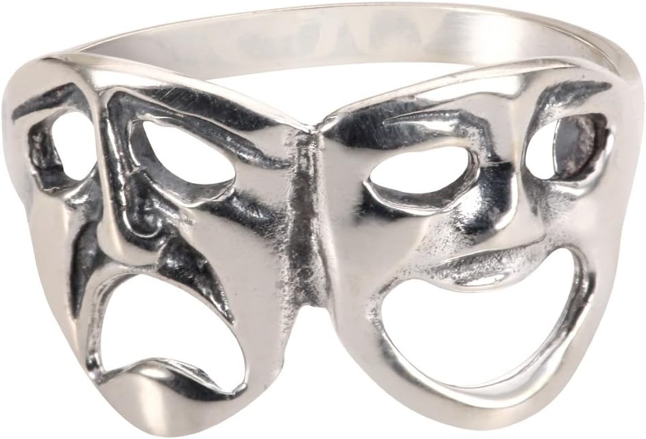 Sterling Silver 925 Comedy Tragedy Theatre Mask Ring. Our silver jewelry is made from Sterling Silver. Sterling Silver is a mixture of high-quality 92.5% or higher pure silver with alloys to add strength and ability to withstand time and wear. All our items have a 925 Stamp referring to the Silver Purity that was used when crafted. Please Note: The 925 Stamp location may vary, depends on the item.