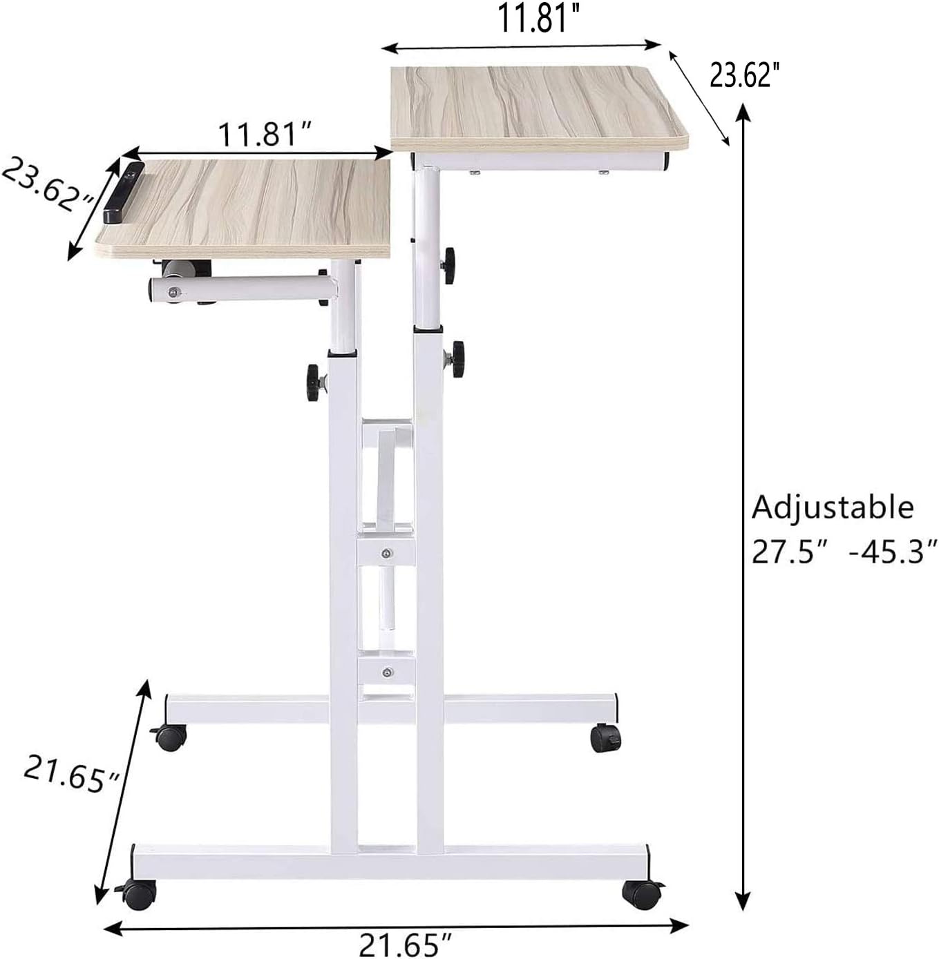 Features: 1. Two tiers: Equipped with two tiers to allow you to store two different things at the same time such as monitor, keyboard, books & more.2. Foldable: Bottom tier allows you to fold and/or adjust. Allowing you to easily reach your keyboard at your most comfortable angle.3. Lockable Wheels: Built with lockable wheels that allows you to transport this unit to wherever you may need it in your home and/or office. Also allows you to lock this unit in place when you transport it to where you need it.Product Specification:Color: Black, BeigeMaterial: MDF + Steel frameSize: 23.62*21.65*27.5-45.3 InchItem Weight: 10 KG/22.05 poundsPackage Include:1 x Computer Desk1 x Instructions