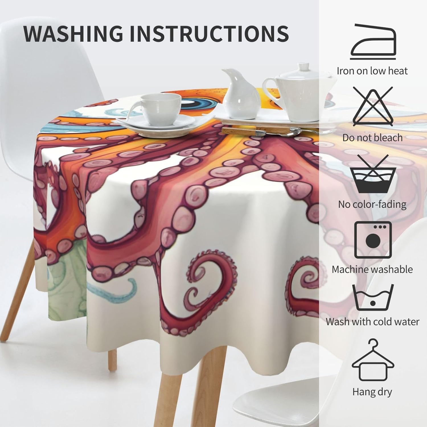 Made from premium peach skin velvet, the Color octopus print Tablecloth provides a perfect blend of durability and softness. Its anti-wrinkle properties ensure that it stays smooth and neat, making it ideal for everyday use. This tablecloth protects your dining surface from damage while enhancing the aesthetic of your dining area with its classic, elegant print. The size of 60 x 60 inches fits most tables and adds a refined look to your space. Its washability makes it easy to maintain, ensuring that it continues to look beautiful for years to come.