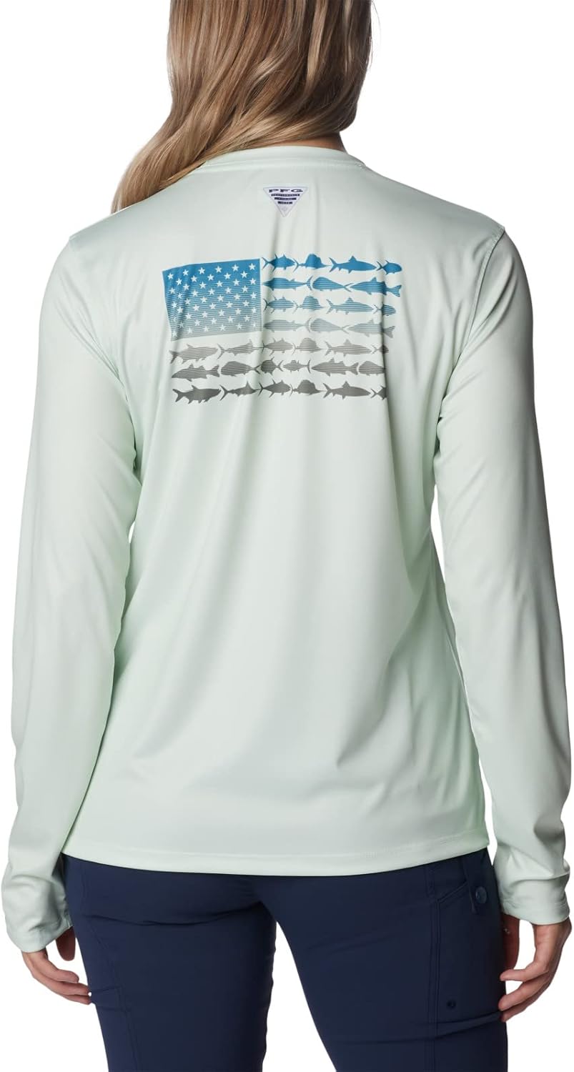 The sun has nothing on this technical PFG shirt, crafted from moisture-wicking fabric with UPF 50 coverage from harmful UV rays. This technology loaded long sleeve Tee is necessity for any day out on the ocean, lake, or river. Made up of a combination of Columbia’s signature protection fabrics: Omni-Shade works to block and shield you from harmful UVA and UVB sun rays, while our Omni-Wick advanced wicking fabric works to pull perspiration and water away from the skin. Columbia offers this t-shirt in multiple staple colors and sizes. Regular Fit. To ensure the size you choose is right, utilize our sizing chart and the following measurement instructions: For the sleeves, start at the center back of your neck and measure across the shoulder and down to the sleeve. If you come up with a partial number, round up to the next even number. For the chest, measure at the fullest part of the chest, under the armpits and over the shoulder blades, keeping the tape measure firm and level.