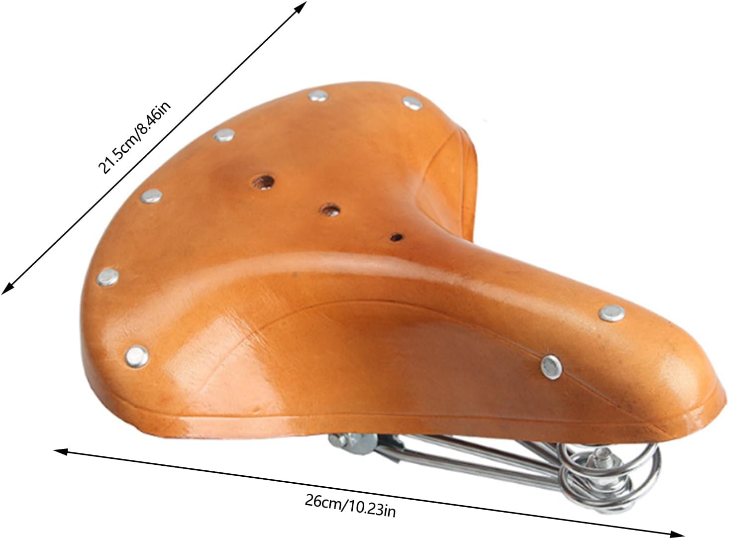 Comfortable Bicycles Cushion 3 Spring Leather Bike Saddles Seat Pad Shockproof Bike Cushion for Mountain Exercise BikesFeatures:Make of Cowhides and Electroplated Spring, it is soft and have good elastics, wear resistance, and certain durability, which can bear long terms cycling use.The shock absorption spring designs provide buffers and greatly increases the effective suspension travel.The pores of seat design helps natural ventilation and keep you cool throughout your ride.universals seat clamp fits almost all kinds of bike seat post and disassemble, suitable for most mountain and road vehicle seat.Specifications:Component: Cowhides and Electroplated SpringSize: about 26x21.5cm/10.24x8.46inchPackage Includes:1pc Bicycles SaddleNote:Please allow 1-2cm errors due to manual measurement, make surely that you not mind before order. Due to difference between different monitors, the picture may not reflect the actual color.