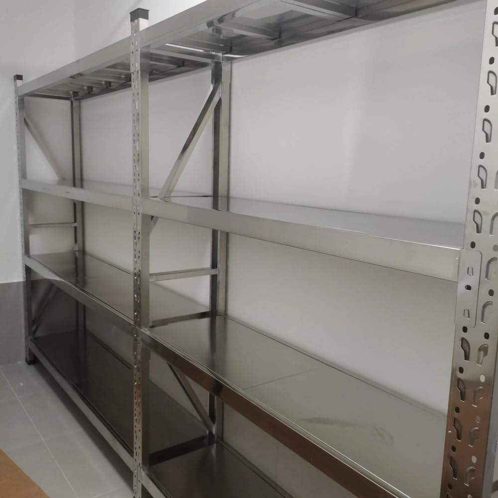 Crafted from durable 201 stainless steel, this heavy-duty storage rack is designed to deliver strength, reliability, and long-term performance in a wide range of environments. Whether you're organizing tools in a garage, storing bulk supplies in a warehouse, or creating efficient storage in a commercial kitchen, this rack offers the durability and versatility you need. The shelving unit is available in multiple widths and tier configurations to match your space and storage requirements. Each shelf is fully adjustable, allowing you to customize the height based on the size and shape of your items. The frame is engineered for stability, reducing wobble and ensuring safe storage of even your heavier equipment or containers. Easy assembly is another key benefit. Thanks to the tool-free snap-on system, you can put the rack together or take it apart in minutes, making it convenient for both permanent installations and temporary setups. This stainless steel rack is ideal for professionals and homeowners alike who need a rugged, low-maintenance solution for organizing their space. Its clean, polished surface is easy to wipe down and resistant to rust, making it suitable for humid or high-use areas. For customers seeking a premium upgrade, stainless steel 304 options may be available upon request. Please contact us for more information.