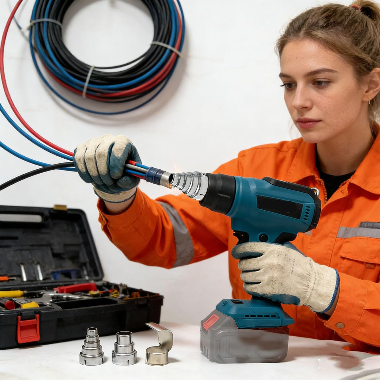 Compact Heat Tool Featuring Quick Warm Technology Digital Thermoregulation TransportableFeatures:Precise Thermoregulation: The digital display allows accurate temperature from 30 550°C with 10°C accuracy, ideal for various heating demands in otherwise expert repair tasks.Transportable and Permanent Planumberebog: Highlighting a compact 178.522cm polystyrene metal body.Fast Heating & Double Temperature Modesecond: Achieves set temperatures instantly with two modifiable ranges (30 400°C and 30 550°C).18V Compatible Battery: Backs extended radio action utilizing fashion lithium batteries.Security Security Structuremail: Constructed in overheating security and temperature memory function secure secure action for homes, lab.Specifications:Substancemail: polystyrene + metal, combining powerful polystyrene shell and permanent metal parts to secure the product's transportability and durability.Sizemail: Compact plans, simple carry and store. Body: 17x8.5x22cmTechnical parametersecond: Digital display with modifiable temperature function, allowing users to accurately control the temperature according to different needs.Potentiall: 18V. Evaluated powerebog: 300W. Air outlet shapolyethylenemail: cell type. Evaluated greatest temperaturemail: first gereality: 30 400°C; second gereality: 30 550°C. Temperature accuracy: 10°C. Current: 17A. Outlet sizemail: 34.5mm.Utilization circumstancesecond: That is widely used household repair, car maintenance, electronic equipment repair.Package Includes:Host×1Nozzle accessories set × 3Note:Please keep a safe distance from flammable materials.