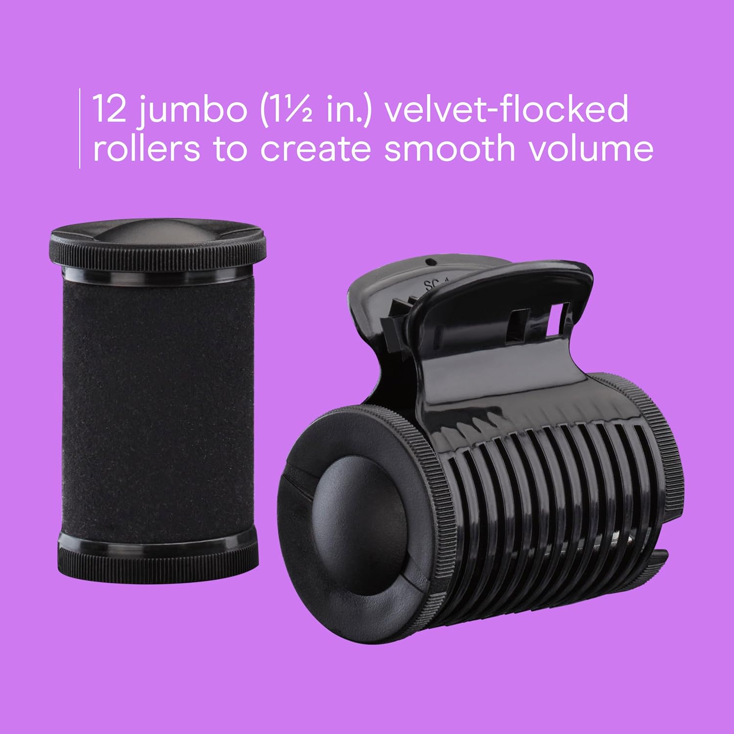 Big volume. Beautiful curls. Style smarter with Conair Hot Rollers for long and medium hair—your new go-to for effortless curls and waves at home. This Amazon-exclusive set includes 12 jumbo 1.5-inch flocked rollers designed to create long-lasting voluminous curls with ease. Perfect for adding body and bounce, these hot curlers for women heat up fast—in just 85 seconds. The velvet finish gently grips your hair to help create smooth salon-worthy results. Whether you’re styling soft waves for everyday or dramatic curls for a night out, these large hot rollers deliver pro-level performance with no guesswork. Just roll, clip, and go. Includes 12 super clips to keep each section in place and let you multitask while the heated rollers work their magic. At Conair, we empower you along your hair journey with the widest range of the latest hair tools and accessories.