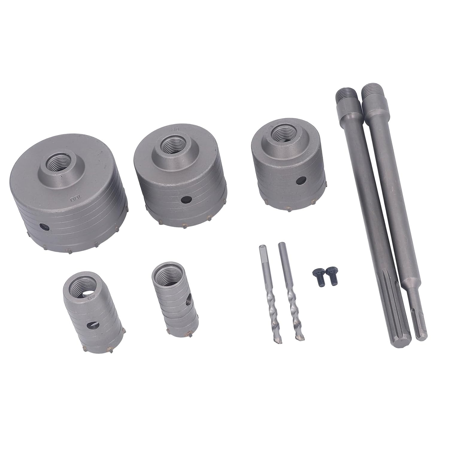 1. EXCELLENT MATERIALS: Masonry hole saw kit is made of excellent cemented carbide that can help you drill clean holes quickly and last for years even in harsh conditions 2. WIDE RANGE OF APPLICATIONS: Cement hole saws can easily drill through the most common wall materials such as stone, cement, brick, , etc., which is the ideal tool for opening holes when you install air conditioners, water pipes, exhaust pipes, and water heaters 3. WIDE COMPATIBILITY: The hole saw work with any electric hammer drill that accept the tool holder, making your hammer drill more useful than ever before 4. EFFICIENT AND FAST: The concrete hole saw has an incisive alloy head, 135° grinding angle, easy to cut into the wall. Achieve fast drilling and improve work efficiency 5. QUICK CLEANING: The concrete hole saw bit sharpness of three bladed teeth and chip extraction hole design allow you to quickly remove internal and external scratches as you drill, and more efficiently Spec: Item Type: Concrete Hole Saw Kit Material: Hard alloy Opening Diameter: Approx. 30mm / 1.18in 40mm / 1.57in 65mm / 2.56in 80mm / 3.15in 100mm / 3.94in Opening Depth: Approx. 50mm / 2in Shank Length(without core drill): Approx. 300mm / 11.81in PackageList: 5 x Hole Saw Drill 2 x Connecting Rod 2 x Core Drill 2 x Screw 1 x Storage Box(random color) Note: Please allow tiny size error due to manual measurement. Thanks for your understanding.