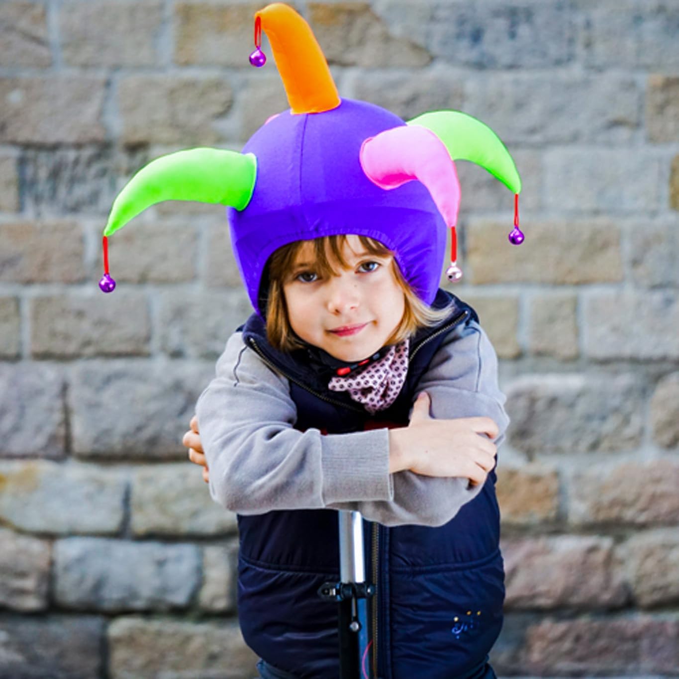 Wacky, wild & tons of fun, check out the Coolcasc Joker Ski helmet cover! Is it possible that we've tracked down the coolest way to jazz up your ski helmet? We think so! This helmet cover fits nicely over just about any ski or snowboard helmet. The material stretches in the right places and elastic circles the bottom of the cover ensuring a snug fit. The parts that stick off of the helmet cover are very soft so they won't interfere with the helmet doing its job. Just slip it over your helmet, strap in, and you're good to go!