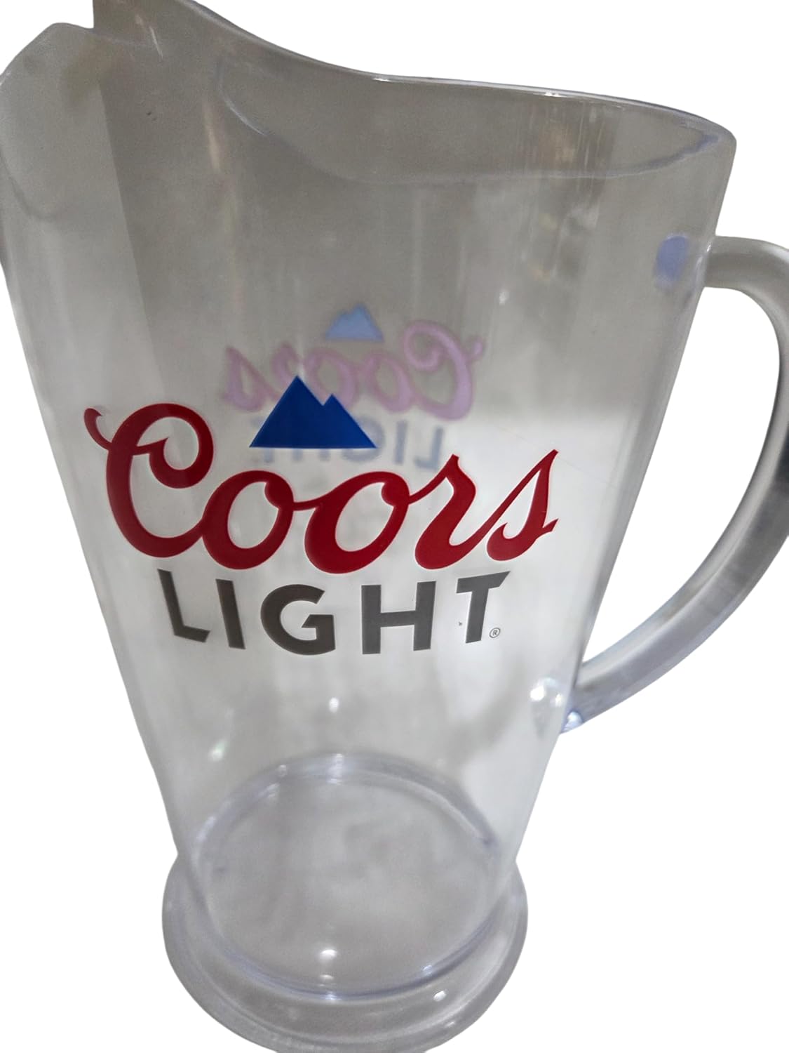 Elevate your beverage service with this generous 60-ounce Coors Light acrylic pitcher. Perfect for parties, game days, or casual gatherings, this durable clear plastic pitcher features the iconic Coors Light branding complete with the signature mountain logo. The lightweight yet sturdy construction makes it ideal for both indoor and outdoor use, while the ergonomic handle ensures comfortable pouring even when full. The pitcher's wide mouth design allows for easy filling and cleaning, while its substantial capacity means fewer refill trips. The crystal-clear acrylic material maintains its transparency and allows you to monitor beverage levels with ease. Whether you're serving beer, mixed drinks, or other cold beverages, this pitcher combines functionality with branded style. The stable base provides reliable support, while the curved spout helps ensure smooth, controlled pouring. This pitcher is a practical addition to any home bar, patio setup, or entertainment area.