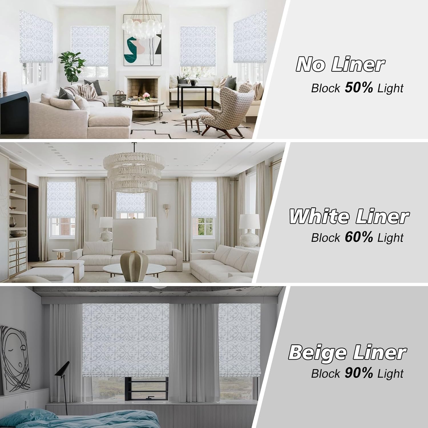 | Lining Description | Beige Liner - Block 90% light, Unlined - Block 30%-40% light, White Liner - Bloc ... and more |