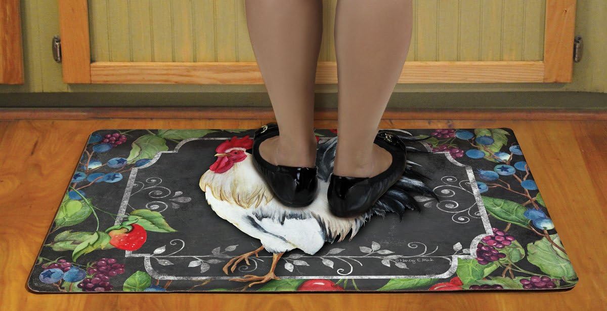 This CounterArt Anti Fatigue floor mat will be your new best friend in the kitchen! Perfect for use in front of the sink or kitchen prep area, this mat features a memory foam core with a durable vinyl exterior and a gorgeous design that will brighten up any home. Form meets function with this gem, by reducing muscle fatigue when standing for long periods of time, while adding a decorative element to any room. If you prefer to stand at work rather than sit, this mat is perfect for the office, as well. Durable, and built to last, the CounterArt Anti Fatigue floor mat measures 20 by 30 inches. Look for additional coordinating kitchen products from CounterArt, such as coasters, signs, and glass items in the same design to create a beautiful theme in your home.