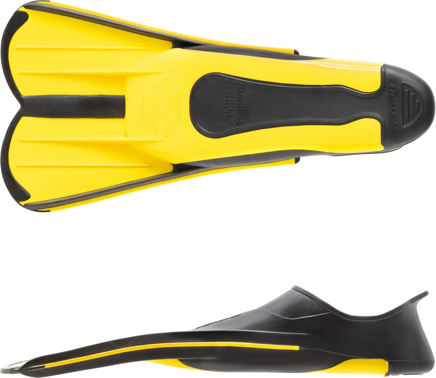 Cressi fins designed specifically for the pool and for training.The short blade is made from highly reactive and light materials to guarantee agile and not very tiring, but still effective kicking.The length of the blade and the materials used have been studied to enable ideal muscle training, without ever causing painful cramps.The side of the blade is protected by a soft elastomer profile to prevent possible damage to other swimmers.The computer-designed foot is made completely from soft elastomers, and its highly anatomical shape houses the foot with a great degree of comfort, even during long swim sessions.The special conformation of the wide-soled foot makes inserting the foot easy and smooth.These fins have been specifically designed for training and to build up muscles, but they can also be profitably used for snorkelling and swimming, where the small size of the blade makes it easier to enter and come out of the water
