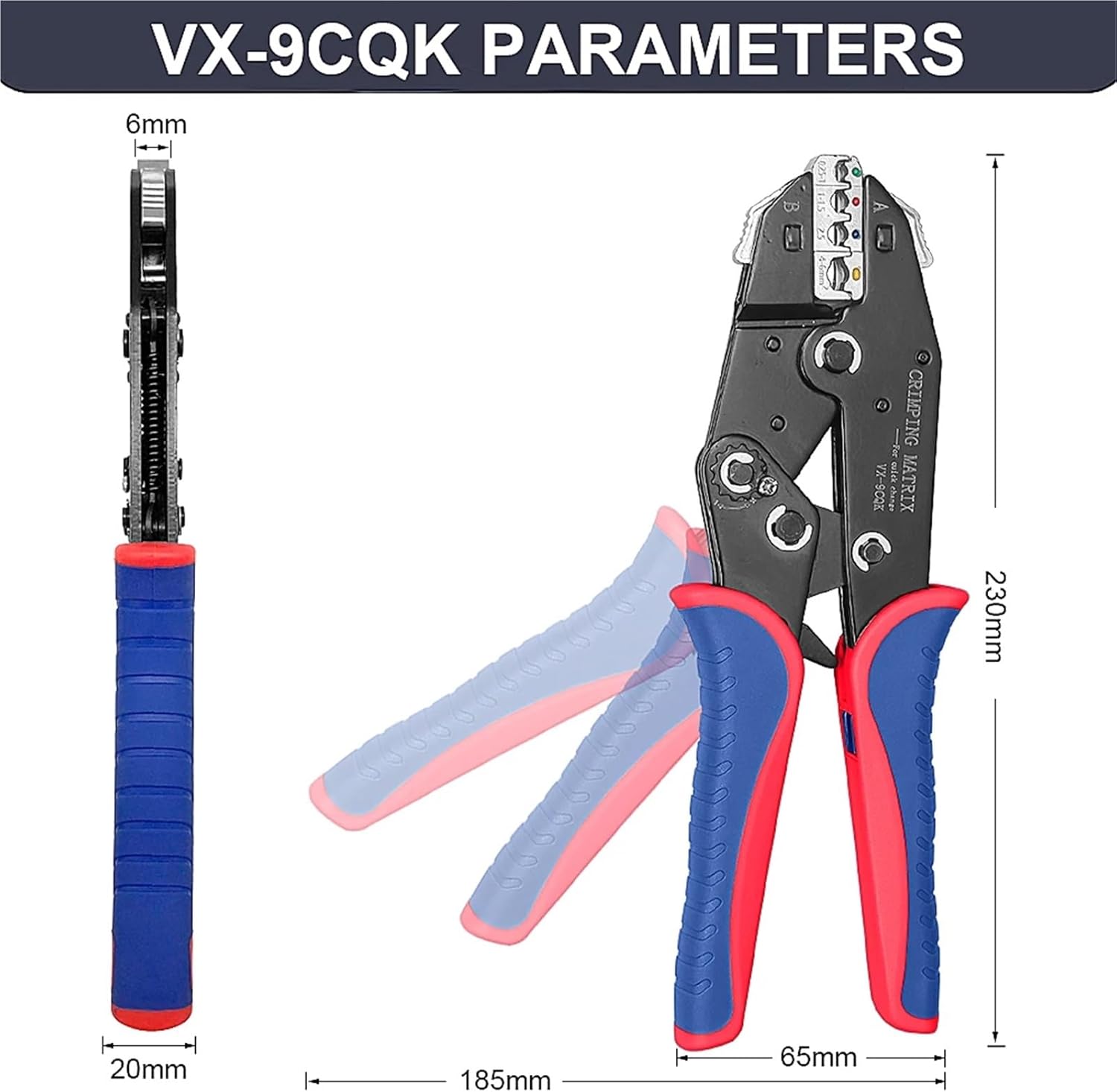 Bolt CuttersVERSATILE WIRE CRIMPER TOOL SET - Works with heat shrink, insulated nylon, non-insulated, open barrel, ferrule, and flag terminalsPERFECT CRIMP EVERY TIME Precise ratcheting mechanism makes proper uniform crimps every timeEFFORTLESS CRIMPING - Professional grade crimping mechanism for all day crimping without hand fatigueINCLUDES PRECISION WIRE STRIPPER Effortlessly cut and strip your wires with a professional wire stripping tool==========High-concerned chemical : NoneHandle Style : StraightFeatures : DismountableApplication : Crimpingis_customized : YesType : Slip Joint PliersPlier Style : EuropeanMaterial : Carbon SteelDIY Supplies : Electrical