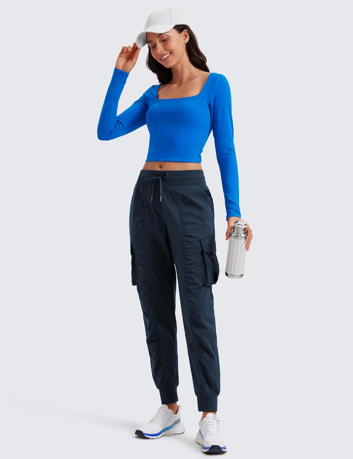 Lightweight Workout Cargo JoggersThis fabric is breathable and durable. Perfect for running, travel, lounging, exercise, fitness, or walking around.Feature:Elastic waistband with drawstringHand pockets with inner pocketTwo cargo pocketsRuching design28" inseamFabric:Lightweight and breathableSturdy and structuredSoft touchPinstripe pattern93% Polyamide, 7% Spandex