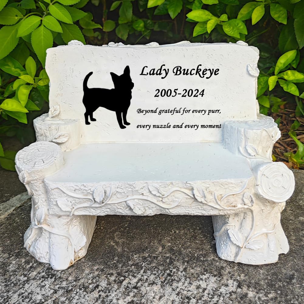 Material: This Bench Memorial Stone Pet Grave Marker is made by water proof resin (durable, weather resistant) Size: 9.45(L) x 4.7(W) x 6.7(H) inches, Weight : 3 pounds. This pet memorial bench garden stone is designed for backyard lawn, garden, and indoor room, can withstand outdoor elements. Suitable for Any Pet: This pet memorial stone is suitable for dog, cat, horse, fish, duck, rabbit cow and so on, you can choose the patter in the 17 styles or give us photo, we can design for you. It's a nice pet grave marker. Indoor Outdoor Decor: This pet memorial stone is all made by handcrated from waterproof resin. You can also put it in the garden or yard. A very nice weather resistan garden decoration stone. Beautiful Caring Gift: This Dog Memorial Stone or cat memorial stone or any pet memorial grave stone can help a Sad Friend or Lover to Remember their love dog. Sharing Good Memories and Emotions Together.