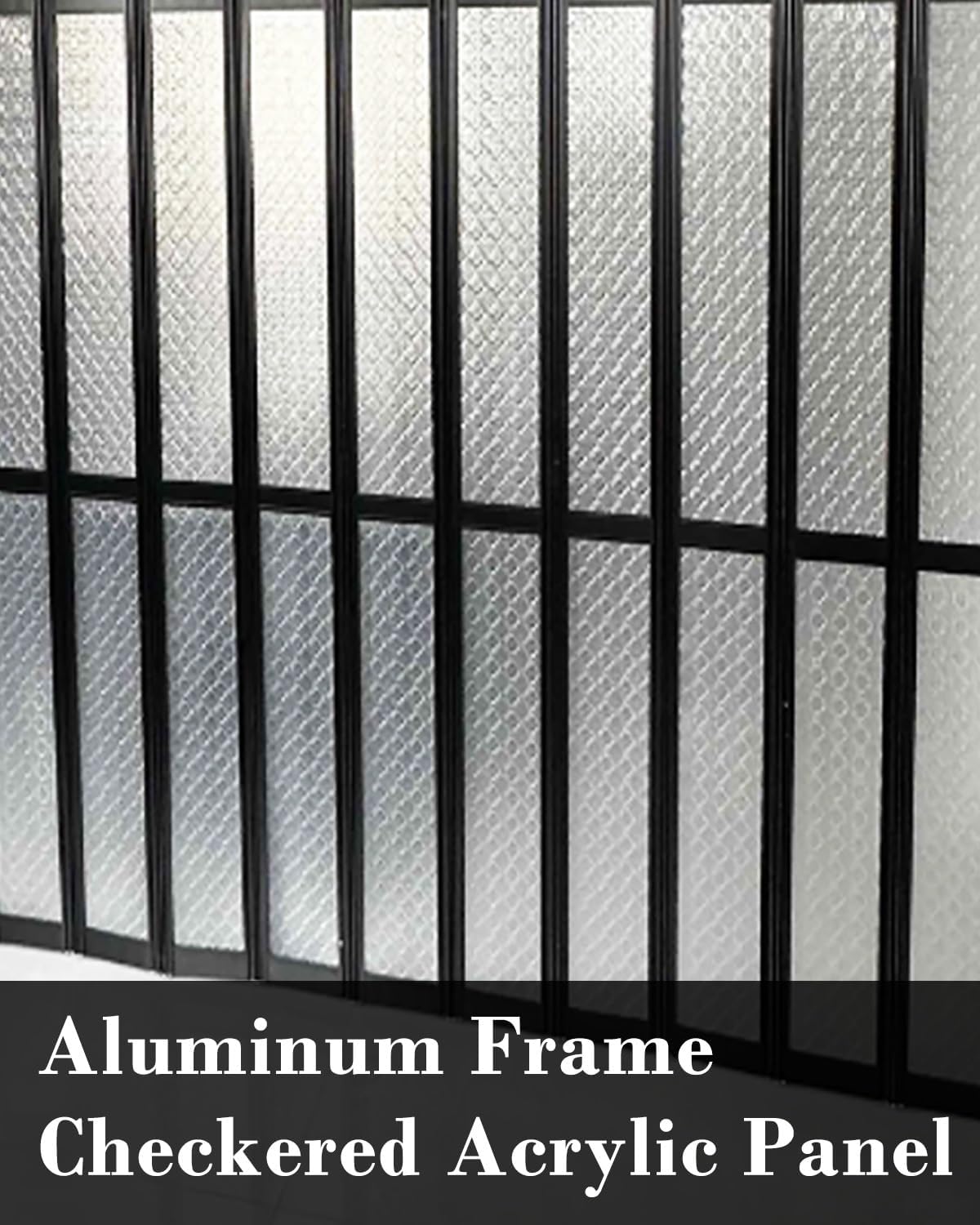 Metal Frame Indoors Security Patio Door:Transform your living space with our innovative folding door, designed to seamlessly separate interior rooms while optimizing your space. This versatile solution not only enhances the aesthetic appeal of your home but also offers practical benefits for various settings. **Product Details:** - **Material:** Durable Aluminium Alloy paired with Checkered Acrylic - **Frame Thickness:** 2.5 cm (1 inch) - **Width Options:** Customizable from 23" to 80" (58.5 cm to 203 cm) - **Height Options:** Customizable from 40" to 80" (102 cm to 203 cm) **Key Features:** - **Space-Saving Design:** Perfect for tight areas, allowing you to maximize your floor space. - **Smooth Operation:** Open and close effortlessly with minimal noise, enhancing your living experience. - **Floor-Friendly:** No bottom track means no tripping hazards, making it easy to keep clean. - **Gentle on Floors:** With a bottom overhang of 1-2 cm (3/8"- 3/4"), it protects your flooring from damage. - **Stable and Safe:** Engineered to prevent derailment, ensuring smooth operation every time. - **Versatile Use:** Ideal as a room divider, doorway closure, shower curtain, or even as a blackout solution for bedrooms and kitchen pantries. - **Pet and Pest Barrier:** Effectively keeps pets and unwanted guests like mosquitoes and mice at bay. **What’s Included:** - 1 x Folding Door - Assembly Hardware **Installation Tips:** - Carefully measure your door frame’s height and width to ensure a proper fit. - Specify your preferred door handle installation direction (left or right). - For custom sizes, feel free to reach out; we offer tailored solutions to meet your needs. **Customer Support:** We are committed to your satisfaction. If you have any questions or require assistance, our 24-hour customer service team is ready to help. Elevate your home decor and functionality with our folding door, a perfect blend of style and utility for any room.
