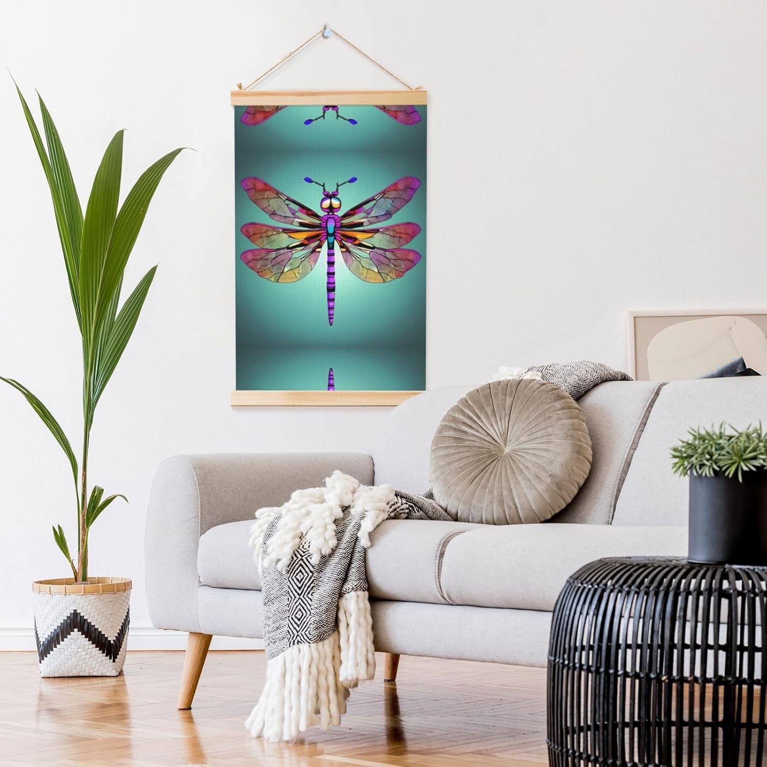 Our Cute Dragonfly Pattern Print Wooden Poster Hanger Is An Excellent Addition To Your Home Decor Or A Perfect Gift For Friends And Family. Made Of Selected Quality Canvas With Brilliant And Enduring Colors, This Wall Art Is Designed To Resist Water, Dust, And Fading, Ensuring The Bright And Vibrant Art Lasts. The Polyester Is Enclosed Between Two Teak Wood Hanger Scrolls With An Attached 35cm Rope For Easy Hanging. Installation Is Made Simple With The Included Two Nails In A Plastic Box. The Modern Minimalist Style Of Our Wall Hanging Complements Any Home Decor, Elevating The Artistic Ambiance And Brightening Up The Room. Experience The Elegant Transformation This Wall Hanging Scroll Painting Brings To Your Spaces Today.