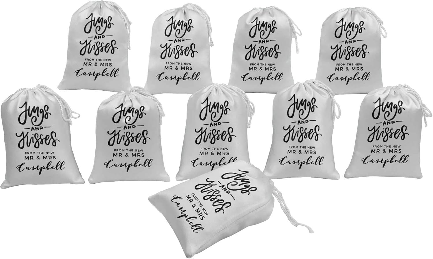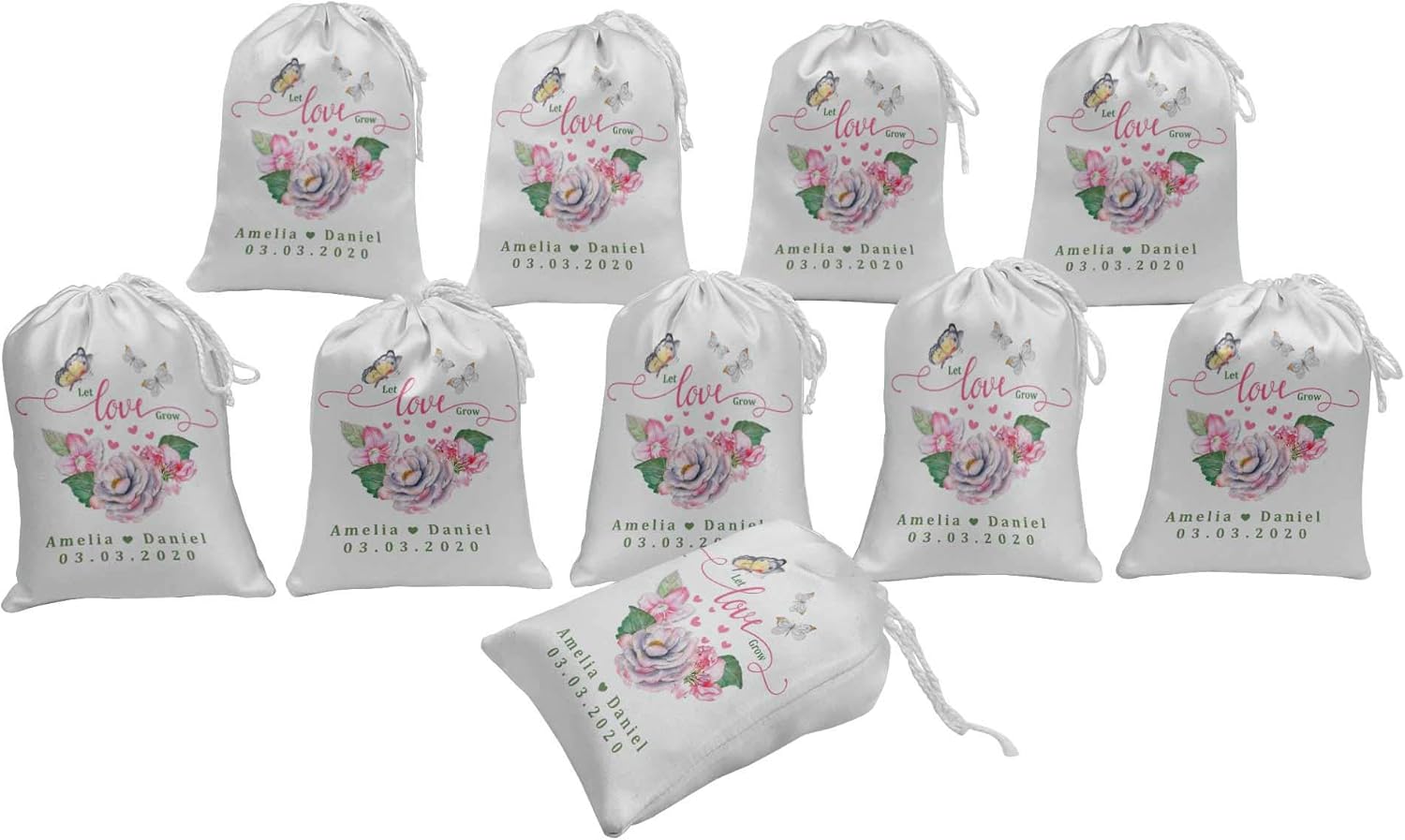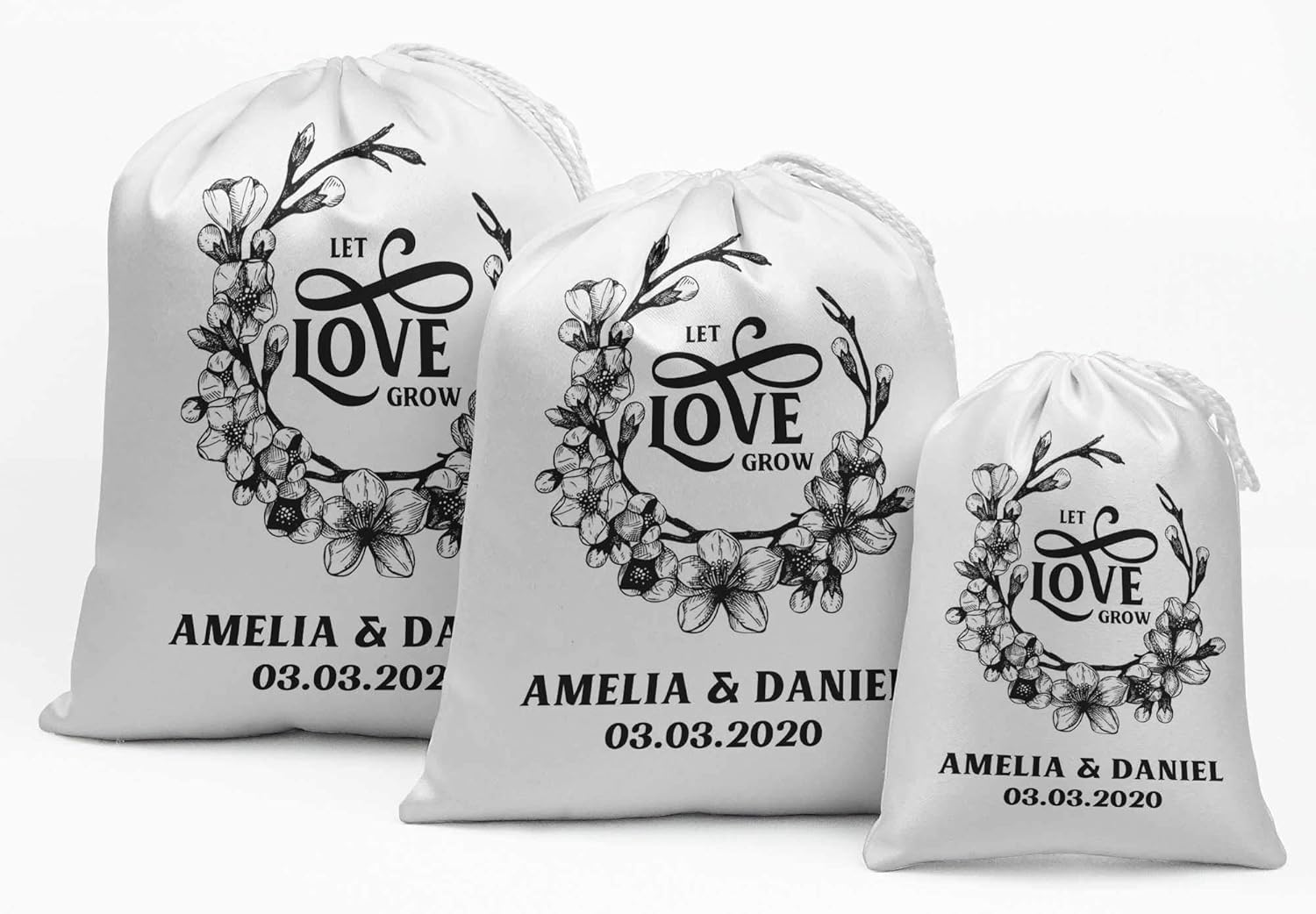 ✤ These Custom-Made Drawstring Bag Can Enhance Your Special Event And Perfect For Your Packaging, Your Favor Or Simply Daily Use, It Also Perfect Jewelry And Precious Item From Dust. ✤ Set Of 15 Wedding Theme Print Drawstring Favor Pouch. ✤ Material: Made Of Heavy Satin Fabric With Print On One Side Only. ✤ Sale For: You Will Receive 15 Bags Per Quantity You Order. ✤ Perfect To Add Chocolates And Other Small Gifts As Return Favors. ✤ How To Order: Once You Have Placed The Order, Click On "Customize Now" Button On Your Top Right And Fill The Detail Carefully On The Text Area & Complete Your Checkout Pages Immediately. Proof Copy For The Same Will Be Sent Only On Request.✤ Design Required - Couple Name & Date (Be very careful with spelling) ✤ If You Need Any Special Customization Then Please Feel Free To Contact Us. ✤ Sale For: We Offer 3 Size Options, You Can Select Desired Size From Given Variation Options. ➊ 5 X 7 Inches (Approx) ➋ 8 X 10 Inches (Approx) ➌ 10 X 12 Inches (Approx)