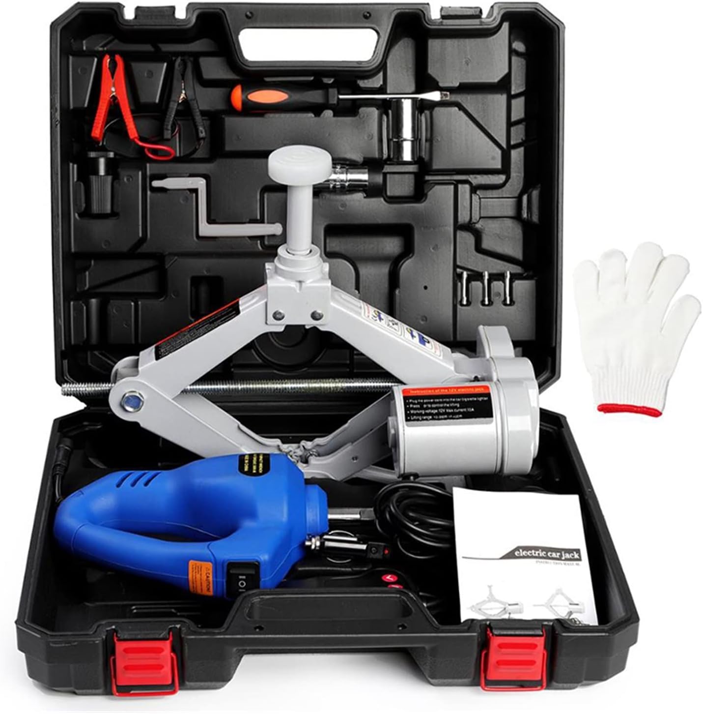 Electric Car Lifting Jack, Lifting Cranes, Material Handling ToolsTechnical SpecsElectric Jack Set: 1pcs Lifting range: 12-35cm, 12-42cmWrench torque: 350N.M Input voltage: DC12V Rated current: 15A Rated power: 100w Carrying weight: 2TonAccessories Cigarette lighter cable (3.5m): 1pcs Battery clip: 1pcs Fuse (15A): 3pcs Hand crank: 1pcs Sleeve: (17/19mm, 21/23mm) 2PCSScrewdriver 1pcs Gloves 1pcs