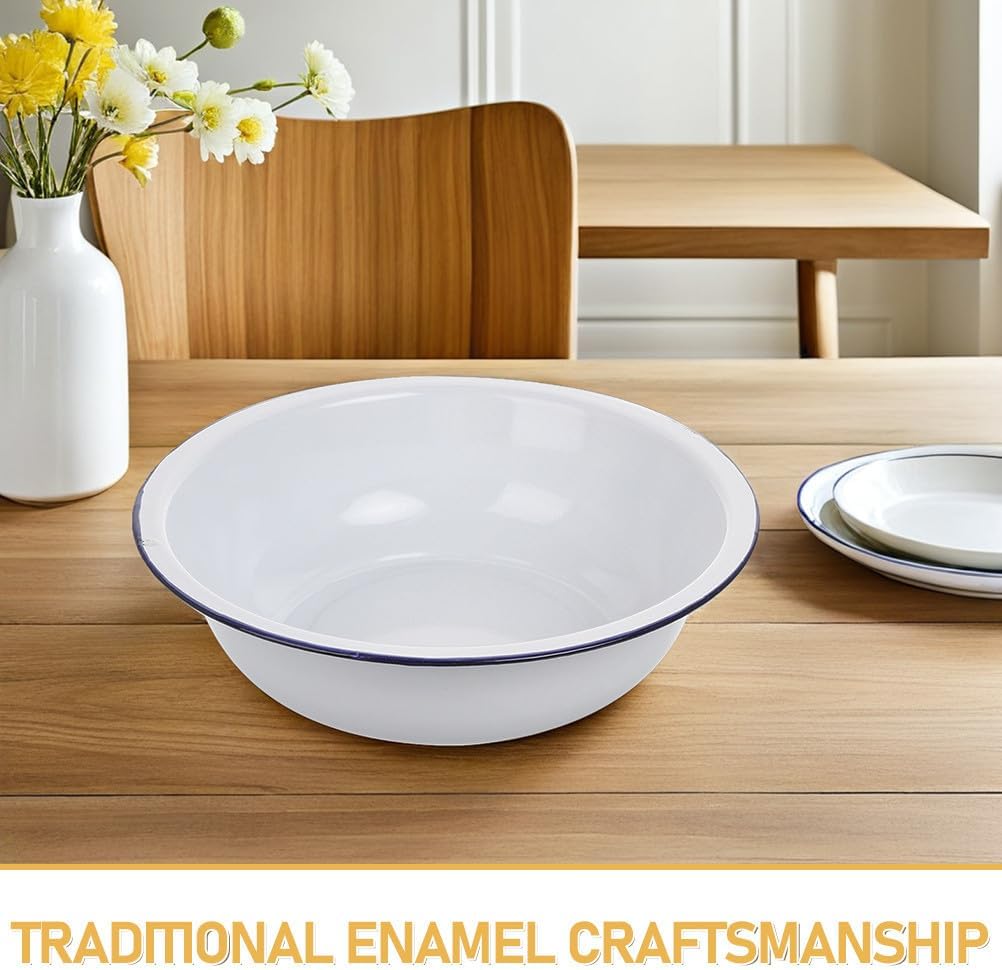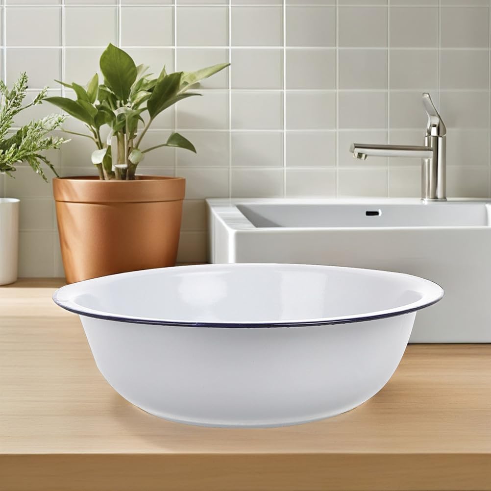 Description This enamel bowl offers a blend of practicality and charm, making it suitable for various kitchen tasks. Its robust construction and smooth surface are perfect for mixing, washing, or serving. The timeless design it fits seamlessly into any kitchen setting, catering to both aesthetic and functional needs. Features -Color:White -Material:Enamel -Size:32.00X32.00X10.00cm/12.58X12.58X3.93in -Enhanced durability: thick enamel construction offers exceptional strength, ensuring the bowl remains intact through frequent use -Minimalist design: the white finish delivers a clean and timeless look, suitable for both modern and traditional interiors -Multifunctional utility: ideal for washing, mixing, or serving, this bowl adapts to various household tasks with ease -Lowmaintenance surface: the enamel coating resists dirt and grime, making cleaning quick and for busy households -Vintage elegance: combining retro craftsmanship with contemporary needs, this enamel bowl is a stylish and functional addition to any home