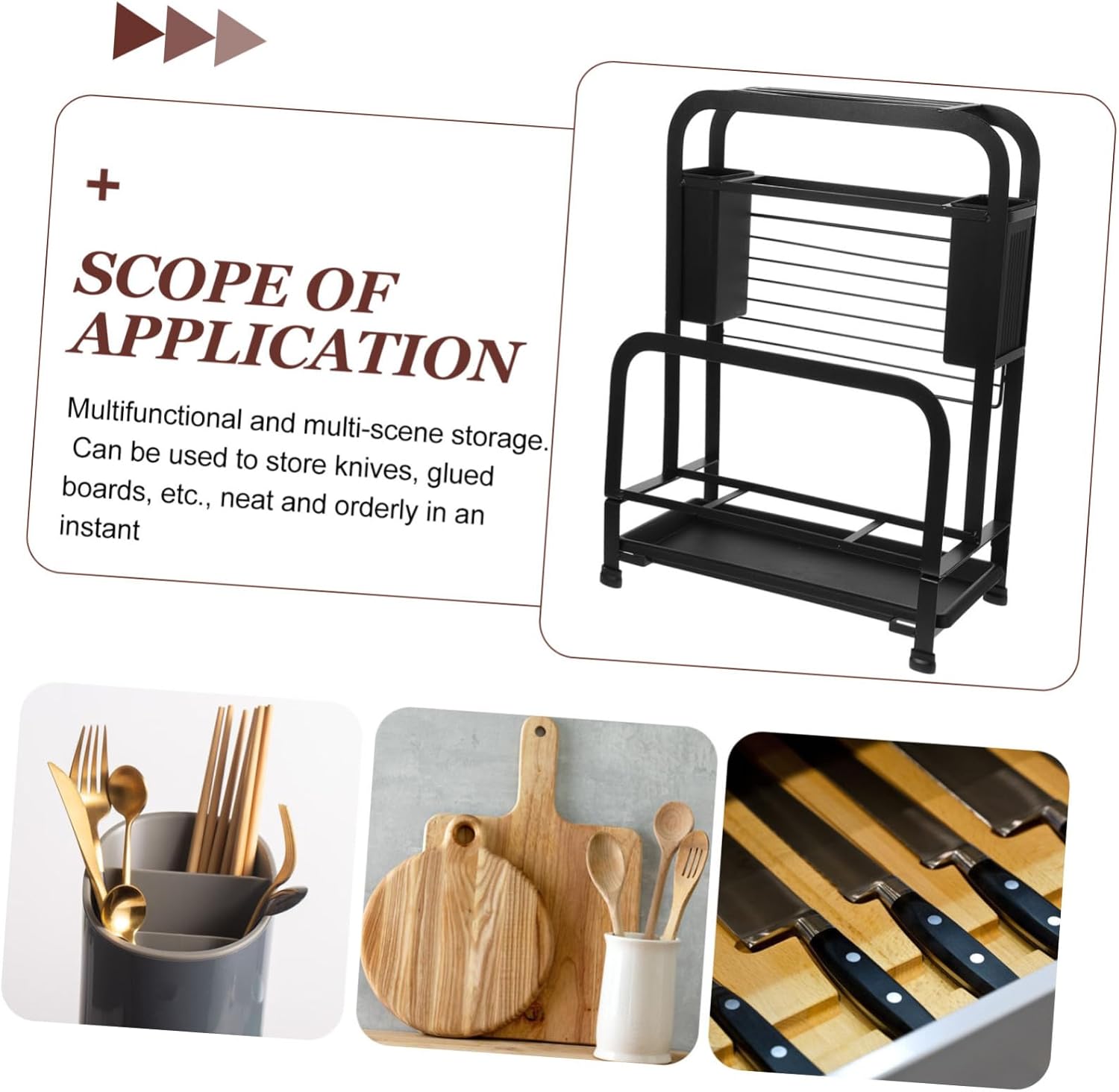 Package List 1 x storage rack Characteristics - Size: 40.00X30.00X18.00cm/15.72X11.79X7.07in Cutlery Stand - Color: Assorted color Cutter Stand. - Material: Carbon steel and plastic Kitchen Cutter Holder. - The removable storage case can be conveniently used for storing chopsticks and kitchen scissors Chopstick Stand. - By utilizing the space in your kitchen, you space and have a large capacity Cutting Board Holder. - It is stain and scratch resistant, and it is also and Cutter Storage Rack. - Ventilation/drain at the bottom is useful for drying dishes. Store in a place that is easy to washed chopsticks or spoons Cutting Board Stand. - The bottom of the holder equipped with anti-slip high-performance rubber. Grips firmly in the kitchen and stabilizes the cutter stand Scissor Holder.Goods DescriptionKitchen Cutter Stand Unique design combines two functions to make cooking more convenient.Cutting Board Stand Store small items such as chopsticks and spoons.Chopstick Stand This is not only a cutter stand, but also a cutting board stand.Cutting Board Holder This selection comes with a chopstick holder.Cutter Stand The cutter stand comes with a pull-out drain pan, so excess water won't flow out.Carbon Steel Cutter Stand Easy to clean and keep your kitchen dry