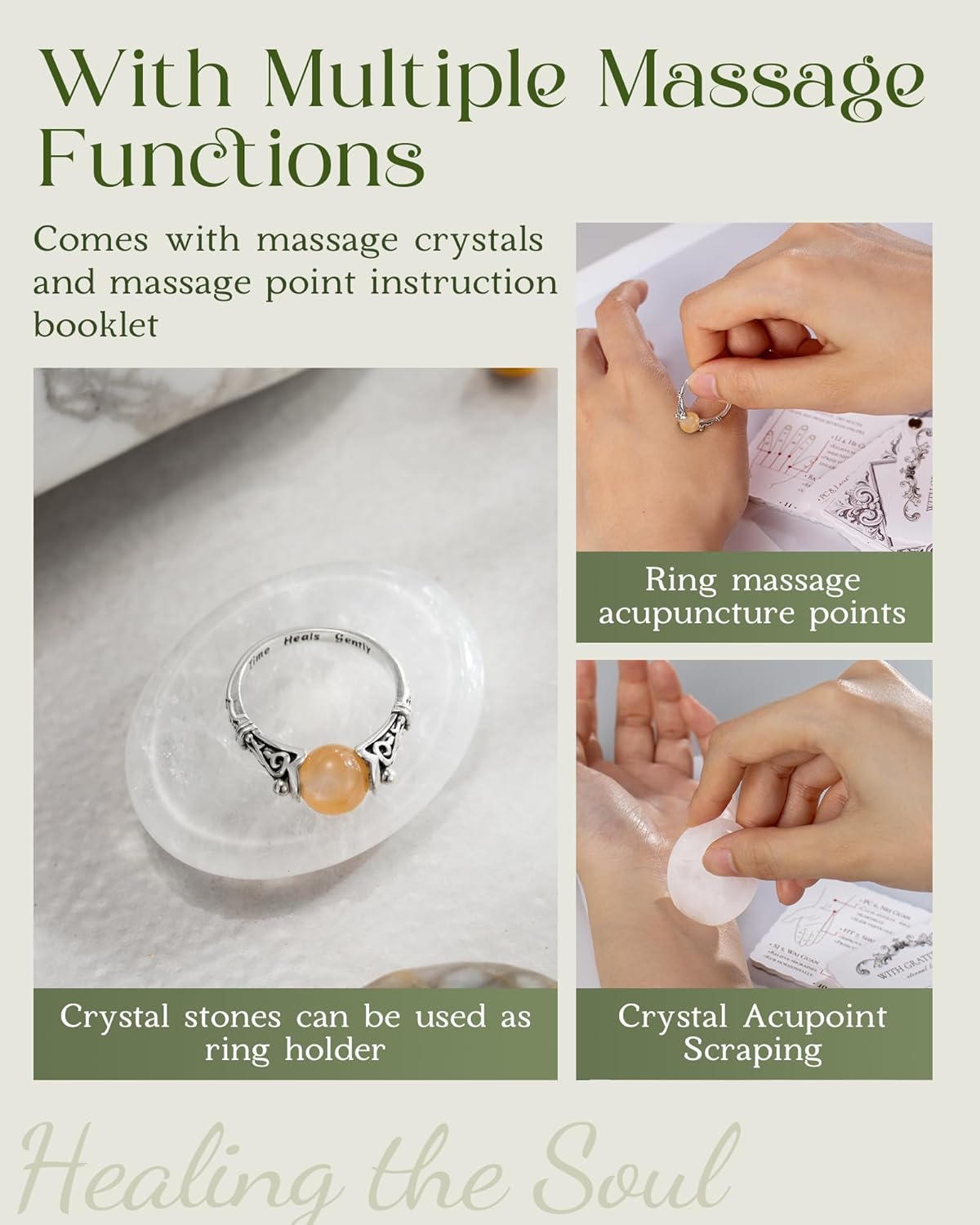 • Gift Ready – Arrives in a beautifully designed gift box, complete with a booklet and a bonus crystal that doubles as a stylish ring stand or gentle massage tool. Perfect for gifting to mom, daughter, women, friends, or loved ones, this ring makes a thoughtful present for birthdays, Christmas, Mother’s Day, anniversaries, or any occasion where a message of peace and harmony is needed. A meaningful gift of calm, balance, and love.