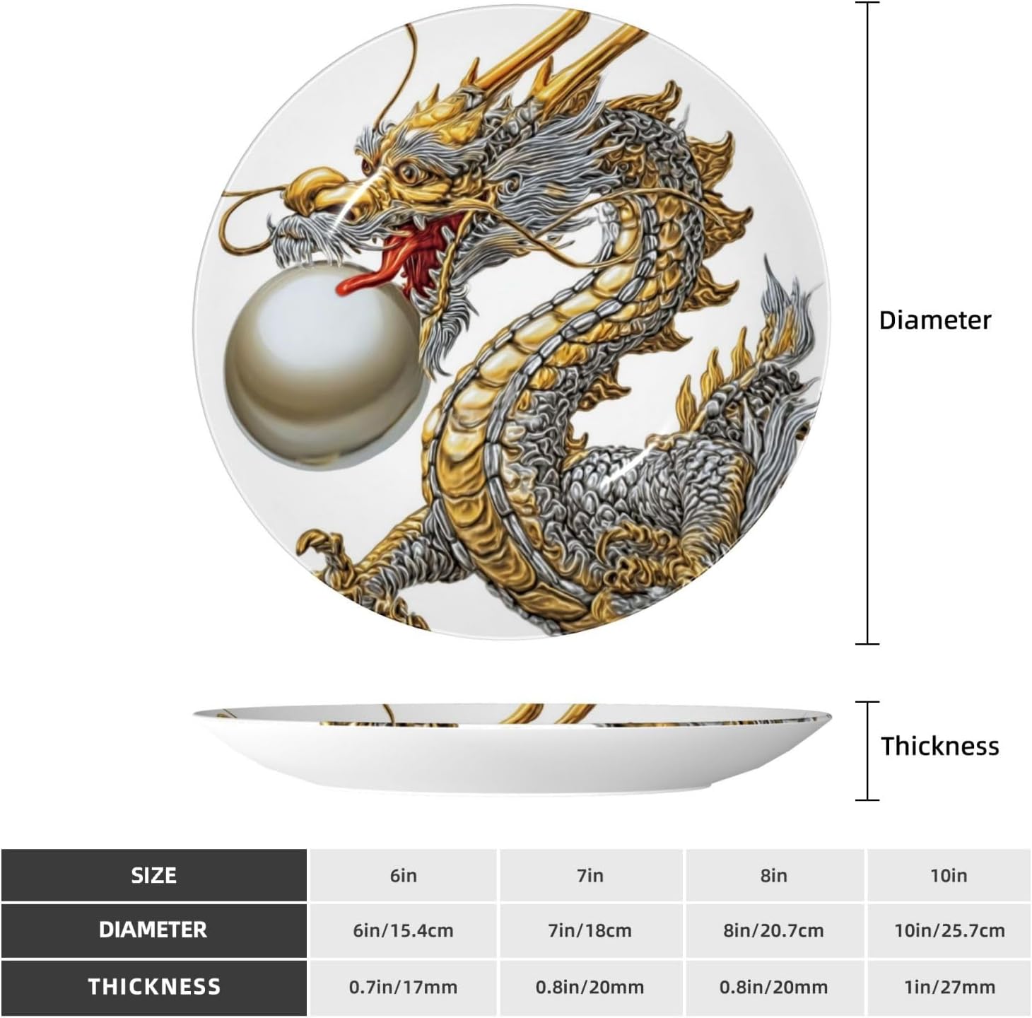 gokays decorative platedo you feel that your table is monotonous? Then use our decorative plate to add a little fun to the monotony of life.featuressize - 6 inch diameter;7 inch diameter;8 inch diameter;10 inch diametermaterial - ceramic design - Chinese dragon with pearl package - 1 x ceramic decorative plate, 1 x stand, 1 x pothookwhy choose gokays decorative plates?advantageas manufacturers we follow current trends and bring you the latest home fashion. Salad plates ideal for placement at home or in the office. Traditional porcelain making technology, fine workmanship. Ceramic dinner plates is a good gift for family and friends.convenient to useour dinner plates rack for display has 2 ways to use, you can just place the bracket base on a flat surface first, and then put the plate on it, also you can stick the provided pothook at the back of the plate, and then stick the plate on the wall, you can choose the suitable installation method according to the actual situation.occasionour ceramic ornaments salad plates is a perfect decorative and collection for any niche, table, or mantle at your home. Perfect for your office, home, living room, dining room, playroom, kitchen, cafe, study, studio, club, bar, and others.in a surprise for your family and friends!porcelain dessert plates is a perfect gift for any person in your life. You can give it directly to your lover as mother's day gift/father's day gift/birthday gift/christmas gift/valentines day gift/anniversary gift/wedding gift/housewarming gift/new home gift.start with our funny decorative plate, refresh your rooms!