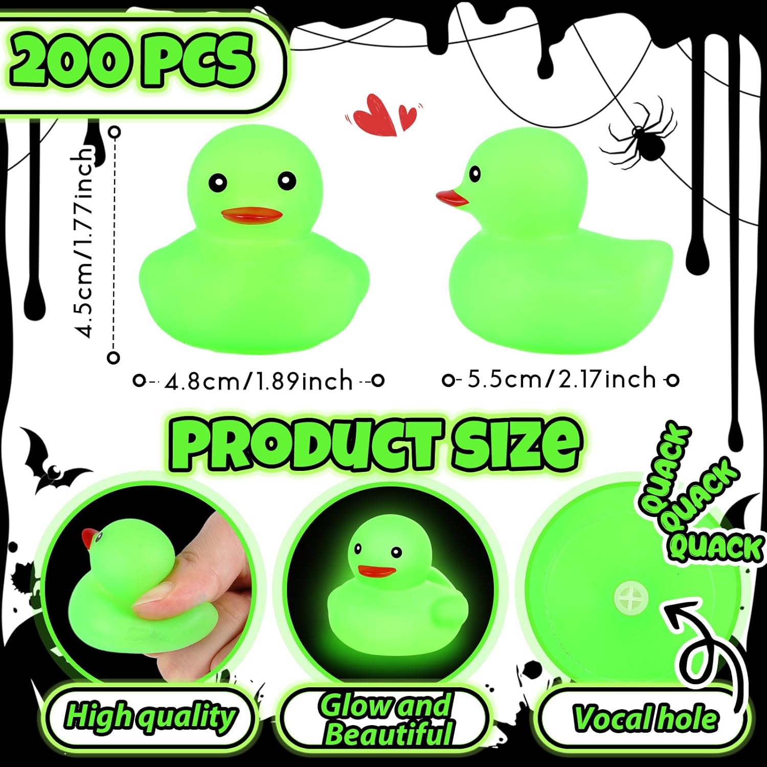 • Where to Use: with cute and vibrant duck appearance, our tiny glow in the dark ducks can be applied as lovely decorations for Halloween light up party decorations, home, birthday and other important occasions, also, they can be interesting bath toys for both adults and teens, creating a soothing and relaxing atmosphere