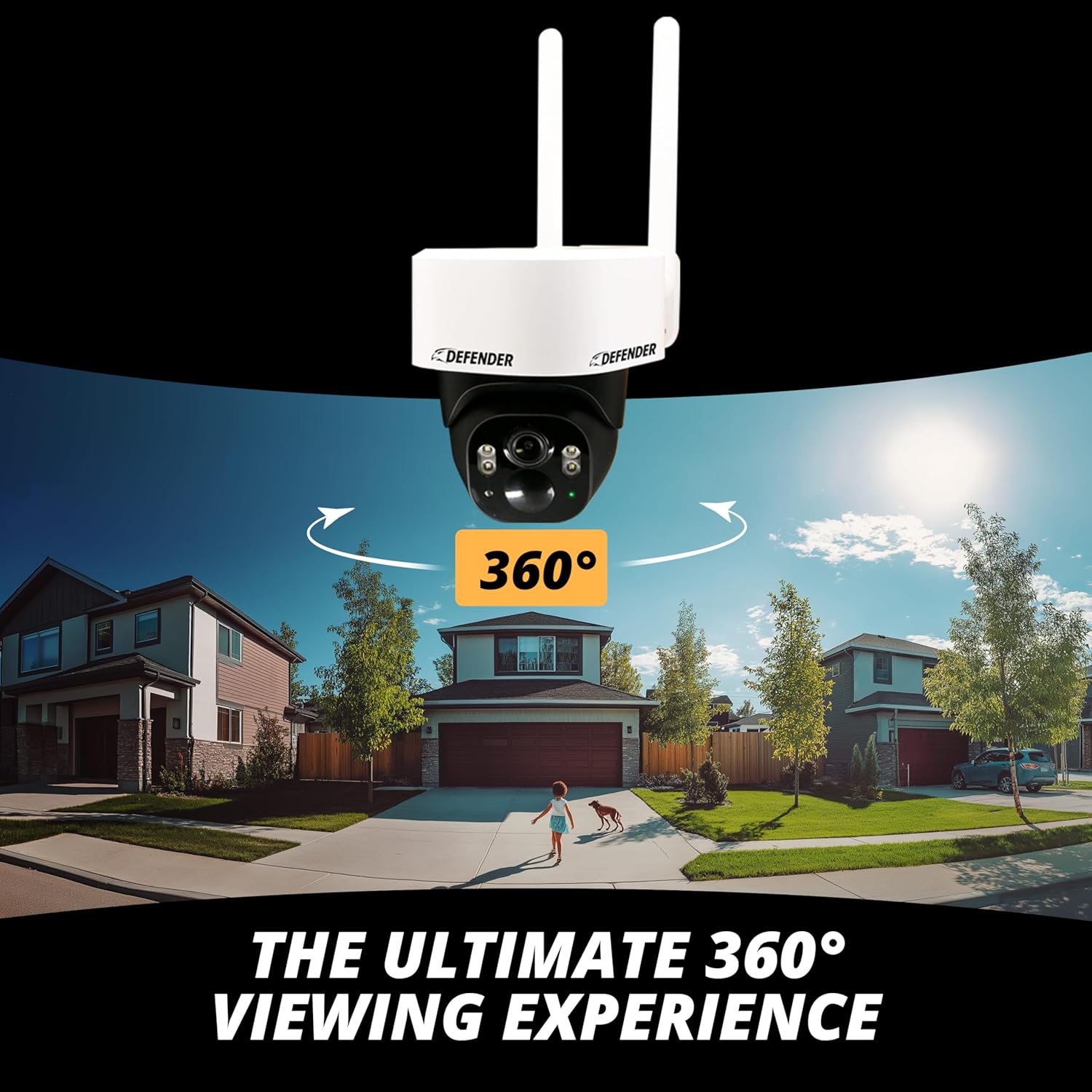 Experience unparalleled home security with the 4G Solar Powered 2K+ AI Frontier PTZ Wireless Security Camera. Effortless installation with true wireless setup in just 3 MINUTES – no wires, no worries. Solar-powered with a high-efficiency 5W panel and a massive 9200mAh battery, ensuring 24/7 continuous surveillance. Enjoy uninterrupted 360° coverage with precision pan, tilt, and zoom controls, eliminating blind spots. Advanced AI-powered tracking pinpoints and follows potential threats. Spotlight/siren combo deters intruders with a powerful deterrent. Capture every detail with crystal-clear 2K+ Super HD resolution, including faces & license plates, even in low-light conditions thanks to state-of-the-art night vision. Weatherproof to withstand extreme temperatures, down to -4°F. Seamless two-way audio lets you communicate with family or deter unwanted visitors. Optional cloud storage with enhanced AI detection & comprehensive security insights. Embrace the future of home security with Defender Frontier.