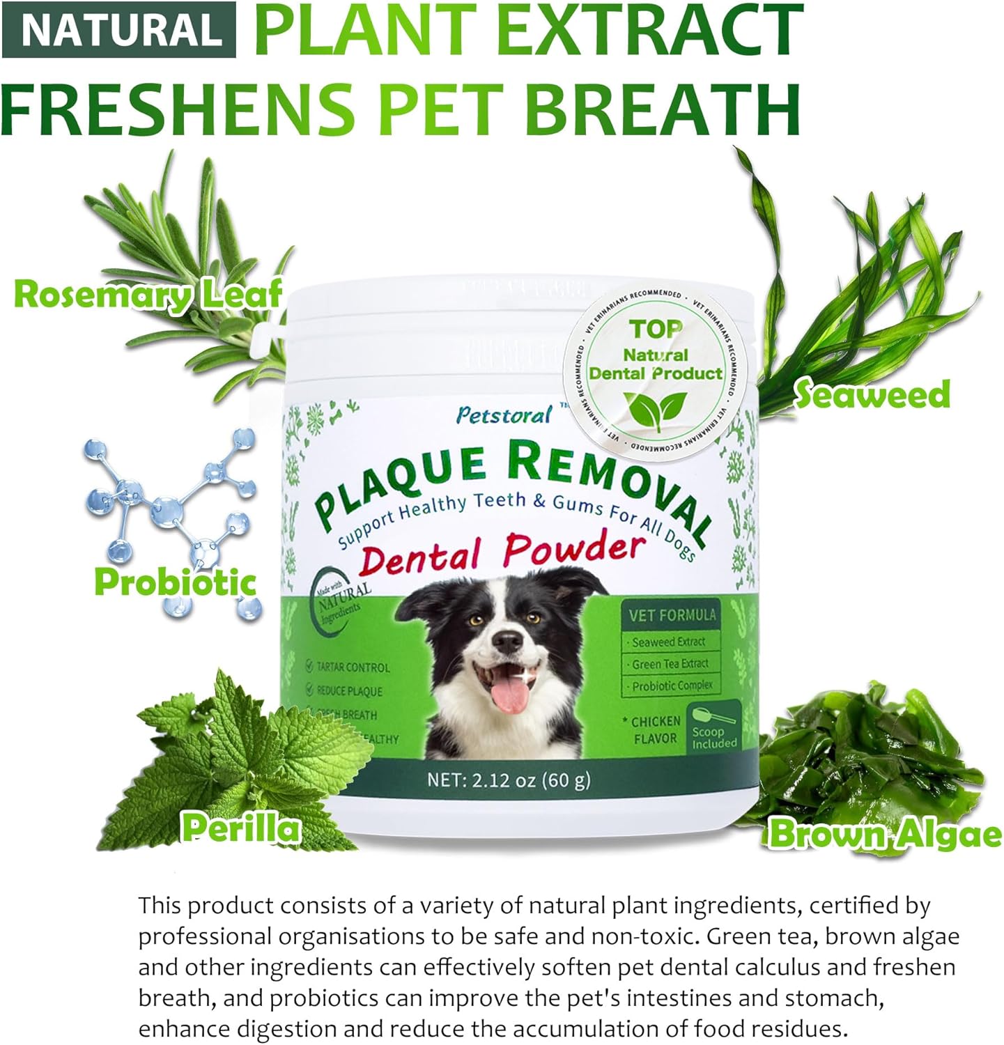 Keep your furry friend's smile bright and healthy with this comprehensive dental care set from Petstoral. The set includes a plaque removal powder with a palatable chicken & egg yolk flavor that dogs love, specially formulated with green tea extract and probiotic complex to support oral health. The powder helps reduce plaque buildup and freshen breath naturally. Complementing the powder are 50 convenient dental wipes designed for both cats and dogs, making daily dental maintenance simple and effective. These wipes help remove plaque and tartar while freshening breath. The combination of powder and wipes provides a complete solution for maintaining your pet's dental hygiene, supporting healthy teeth and gums. Regular use helps prevent common dental issues and promotes better oral health for your beloved pets.