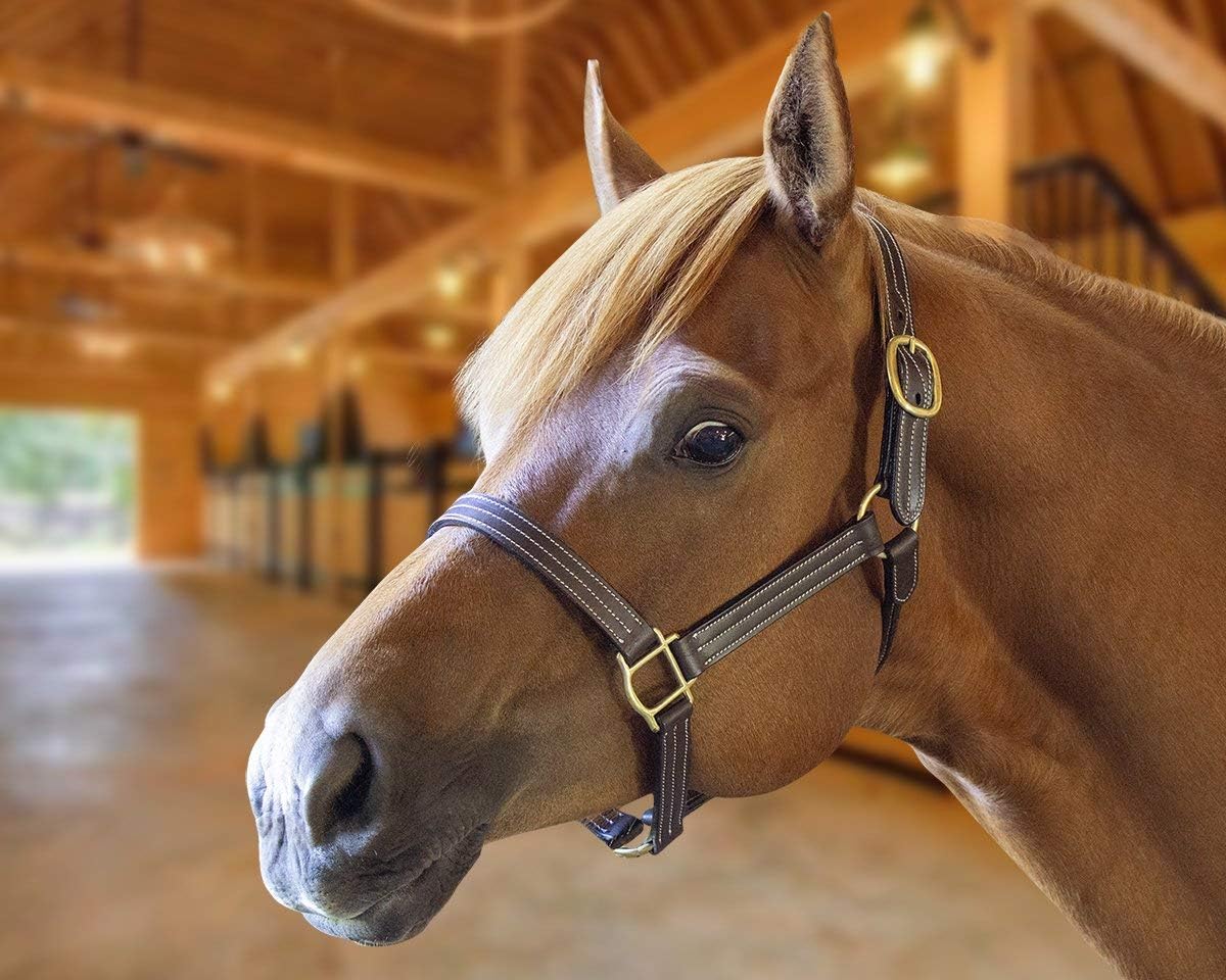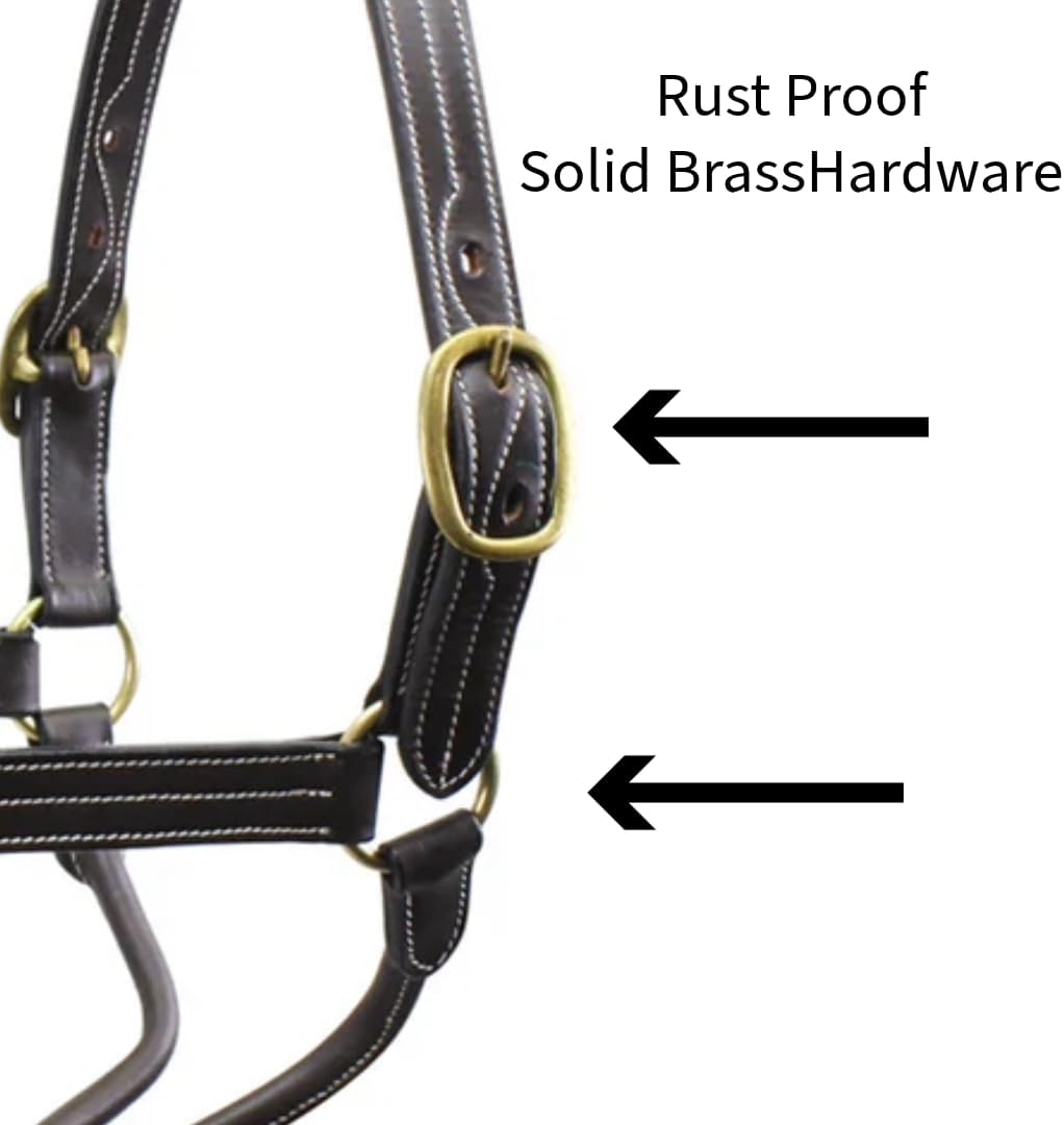 Derby Originals Cambridge Triple Stitched Leather Halter An Elegant Stable Halter with A Royal Design This is a beautifully hand-crafted traditional leather horse halter. The white triple stitched design gives this halter a royal look while providing durability and full functionality. This is the perfect leather halter to dress your horse with when attending shows, clinics, and for shipping or hauling!