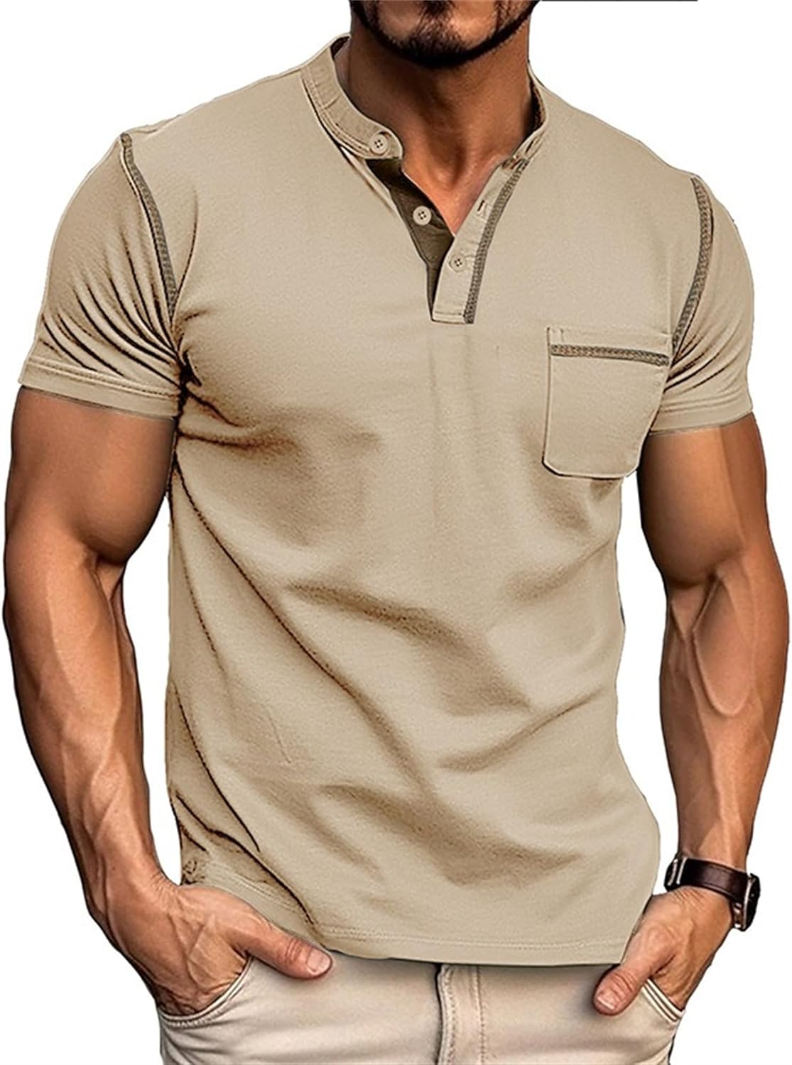 Product DescriptionPattern: Solid colorStyle: slim fitSuitable for: ManCollar shape: V-neck、collarless、Round neck、lapel collarSleeve length: short sleevedSuitable season: SummerError range: 1-3cmGarment CARE: Hand wash or machine wash with cold water (Hand wash recommend) . Hang drySimple design, comfortable fabric, your summer wardrobe essential top, simple collocation, suitable for a variety of occasions to wear.Fashion Casual Shirt Suitable for Office, Workwear, Semi Formal, Business, Date, Party, Club, Travel and Casual Daily Wear.Our shirts are comfortable and breathable, casual in style, simple and fashionable in design.The fabric is very comfortable and soft with a certain elasticity.Our shirts can be worn in different scenes of life, whether formal or informal, and are easy to match. Formal suit pants or casual jeans and beach pants are suitable.Note:1.Please refer to our size chart (not amazon size).Asian sizes run small, so we recommend you buy 1-2 sizes larger. Please choose your normal size.2.Due To The Different Colors Of The Display Computer May Slightly Vary, It May Be Slight Color Differences. Thank You For Your Understanding.3. Please Allow 1-3Cm Measurement Error Because All Measurements Are Measured By Hand.