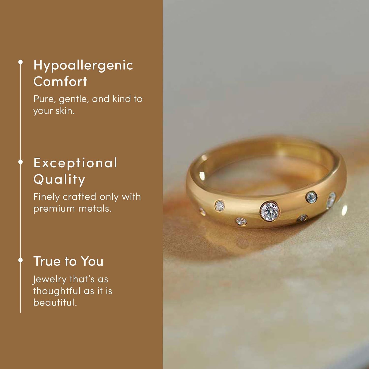 Every sparkle tells a story - of mindful choices, effortless beauty, and everyday confidence. The HYOU Scattered diamond engagement rings for women embody that story, blending luxury and conscience in one timeless, radiant piece. Crafted in 14K gold vermeil over 925 sterling silver, it combines the warmth of gold with the strength of silver. Our vermeil rings are not just gold gold plated rings - they have a premium, thicker layer of genuine gold bonded over sterling silver, ensuring long-lasting shine and durability. The result? A radiant, fine-finish women rings that feels rich yet remains accessible. HYOU understands that true beauty should never come at the cost of comfort. This silver wedding band women is designed for all-day wear, offering ease, confidence, and brilliance you can rely on. With a 5-year warranty, each piece is built to accompany you through countless days and occasions, maintaining its sheen with minimal upkeep. At its heart lies the star of the show - a lab grown diamond that mirrors the allure and sparkle of mined diamonds, minus the environmental impact. Whether you call it a wedding ring, eternity band, or promise ring, the message is the same - conscious luxury can be breathtakingly beautiful. Packaged in an elegant jewelry gift box, it’s a ready-to-gift treasure for birthdays, anniversaries, engagements, or everyday celebrations. Smartly priced and beautifully made, these gold wedding bands for women make it easy to build your gold & silver jewelry collection with meaningful pieces that reflect your individuality. At HYOU, we believe jewelry should tell stories - not just of sparkle, but of smart choices, and attainable luxury. Choose HYOU - where modern craftsmanship meets mindful elegance, and every diamond tells your story with brilliance that lasts.