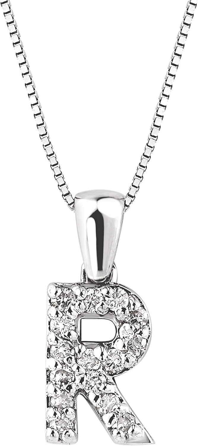 • PERSONAL & UNIQUE- A dazzling 14k Yellow Gold Letter R pendant, encrusted with shimmering round-cut, white diamond accents is the perfect way to add a dash of sparkle and fire and a chic, personal and sentimental style to her look that represents her name, or just someone special. The pendant hangs from an adjustable 18-inch box chain that fastens with a spring-ring clasp. The lenght of the pendant is appx 9.95 mm and widht is appx 6.84 mm