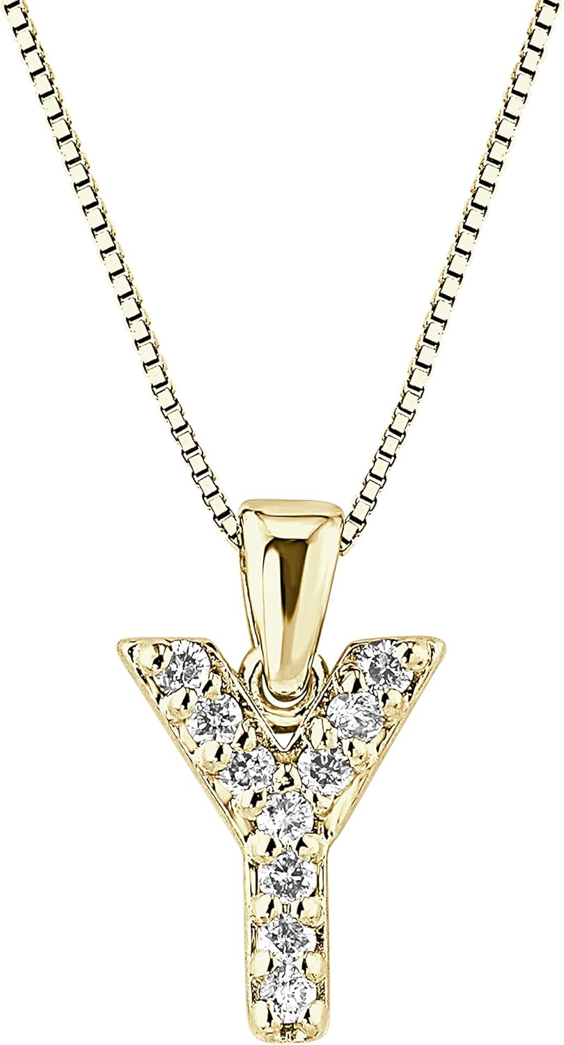 Diamond Wish 14k Gold A to Z Letter Diamond Initial Pendant Necklace (1/10cttw) with 18-inch chain
