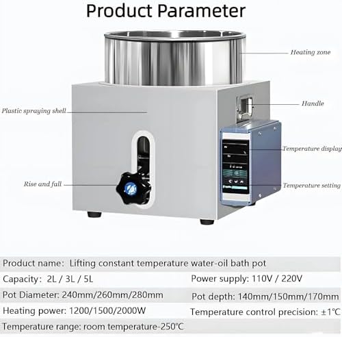 Introducing our Constant Temperature Oil Water Bath, designed to meet the needs of scientific research and various industrial applications. This versatile product is available in three capacities: 2L, 3L, and 5L, allowing you to choose the perfect size for your specific requirements. With power options of 1.2KW, 1.5KW, and 2KW, this oil water bath ensures efficient and reliable heating performance. Experience precise temperature control with a range from room temperature to 250°C, and enjoy the confidence that comes with a temperature control accuracy of ±1°C. Our advanced PID intelligent temperature control system guarantees optimal performance, making it ideal for experiments that demand accuracy and consistency. The excellent temperature uniformity of 80% ensures that your samples are subjected to stable conditions for accurate results. The inner tank dimensions of our oil water bath are designed for practicality, with sizes of 240 x 140mm, 260 x 150mm, and 280 x 170mm. This design allows for easy placement of various containers, making it suitable for a wide range of applications—from routine laboratory testing to specialized eonal purposes. Your purchase includes a Constant Temperature Oil Water Bath and a comprehensive instruction manual, ensuring that you can set up and start using your new equipment with ease. Should you have any inquiries or require support, our dedicated service team is just an email away, ready to assist you. Elevate your research and operational efficiency with our reliable Constant Temperature Oil Water Bath, designed for performance and precision in every use.