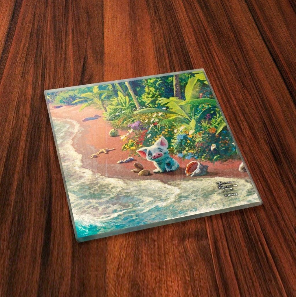 This set of four 4” x 4” coasters features scenes from Disney’s Moana. The scenes include Moana holding the glowing heart of Te Fiti as she rides along the ocean waves with Maui and Hei Hei. Her pet pig Pua watches her from the island shore, and a larger-than-life Te Fiti looks toward the princess with admiration. There is also an under the sea scene near the boat where we can see turtles swimming by. StarFire Prints Glass Coasters StarFire Prints glass coasters are photographic quality prints fused permanently into glass. Featuring artwork from your favorite movies, these coasters are an elegant way to display your fandom to the world. These images are permanently fused into the glass, resulting in a print that captures the natural light, enhancing the color display and making each image a true piece of art.