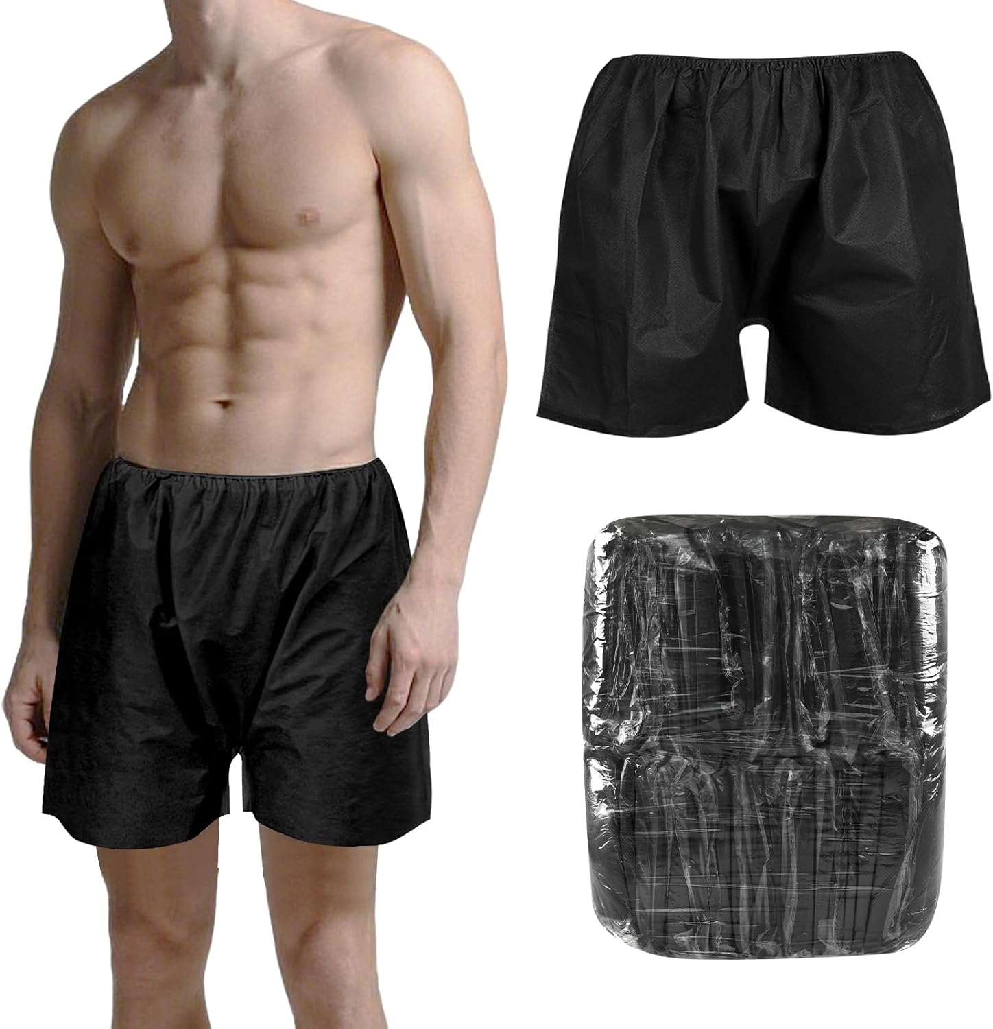 Disposable Exam Shorts Black Non Woven with Elastic Waistband for Examination Massage Spray Tan Spa Disposable Examination Shorts Medical Exam Patient Short With Elastic Waistband Large Bottoms for Massage Spa Medical Services Spray Tan Spa Durable material high-quality fabric breathable comfortable flexible waistband easy to wear and take off.