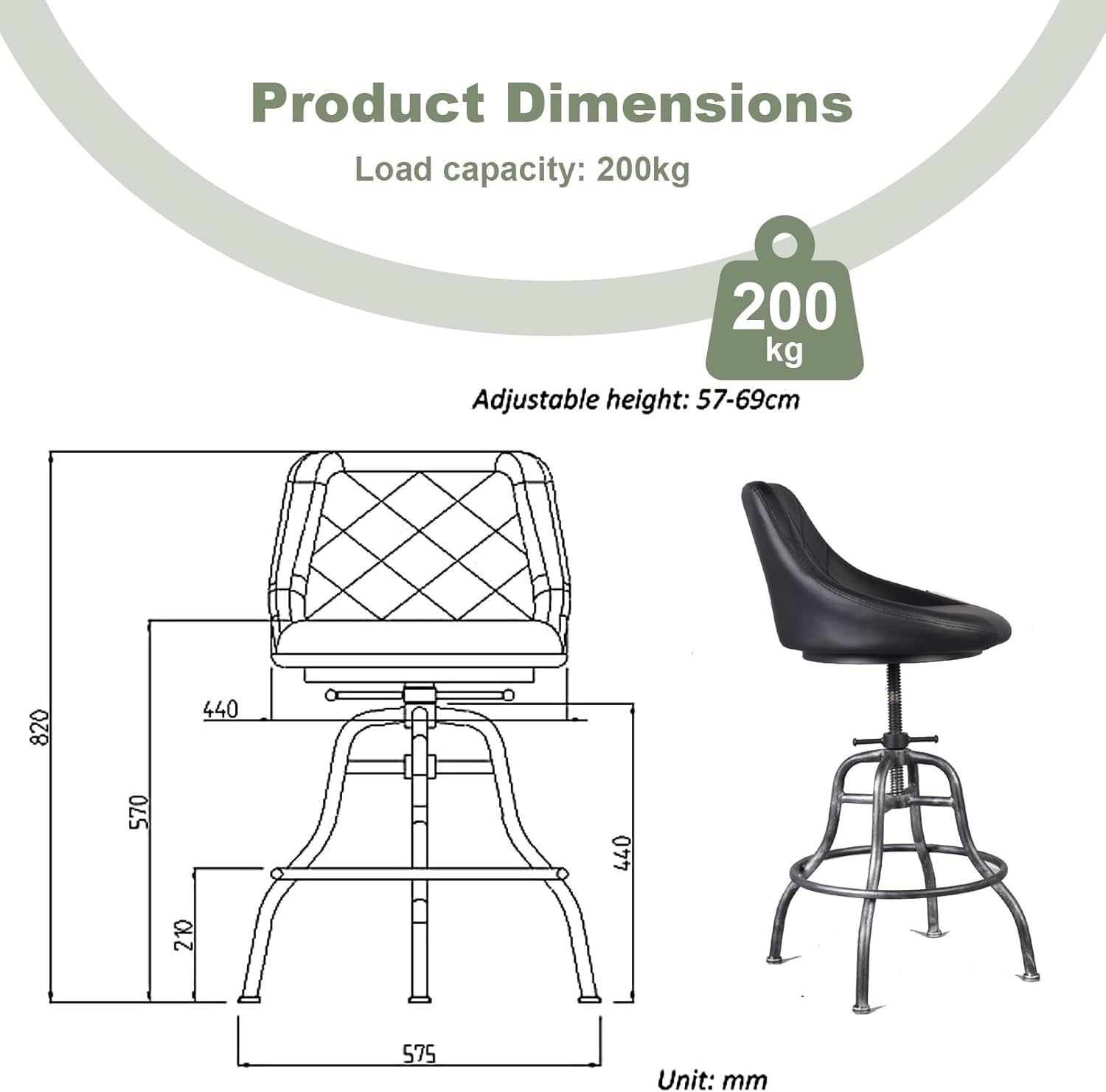 Armrest & Backrest Leisure Faux Leather ChairA wise choice for your home Thickened cushion Firm frame High-quality faux leather surface Soft Sponge-filledDesigned for Comfort - The backrest and padded seat are both angled to create an ergonomic chair. This distinctive curvature puts the sitter in a unique position specifically designed to achieve a truly comforting experience.industrial Style -height adjustable it can match counter and bar well describe this home office living room chair. It's compelling enough to stand alone in any modern home.Lounge-worthy swivel chair. Create a contemporary ambience with eye-catching curves and a sleek metal base, this chair is the ideal combination of style and comfort.Widely Used for Your Home Bedroom Side Chairs Study Room Chairs Living Room ChairsDimensions overall size :57.5×57.5×82 cm/22.64×22.64×32.3 inch. Weight capacity: 250 pounds Package: 1 Accent chair Avoid moisture. Wipe with a soft, dry cloth.