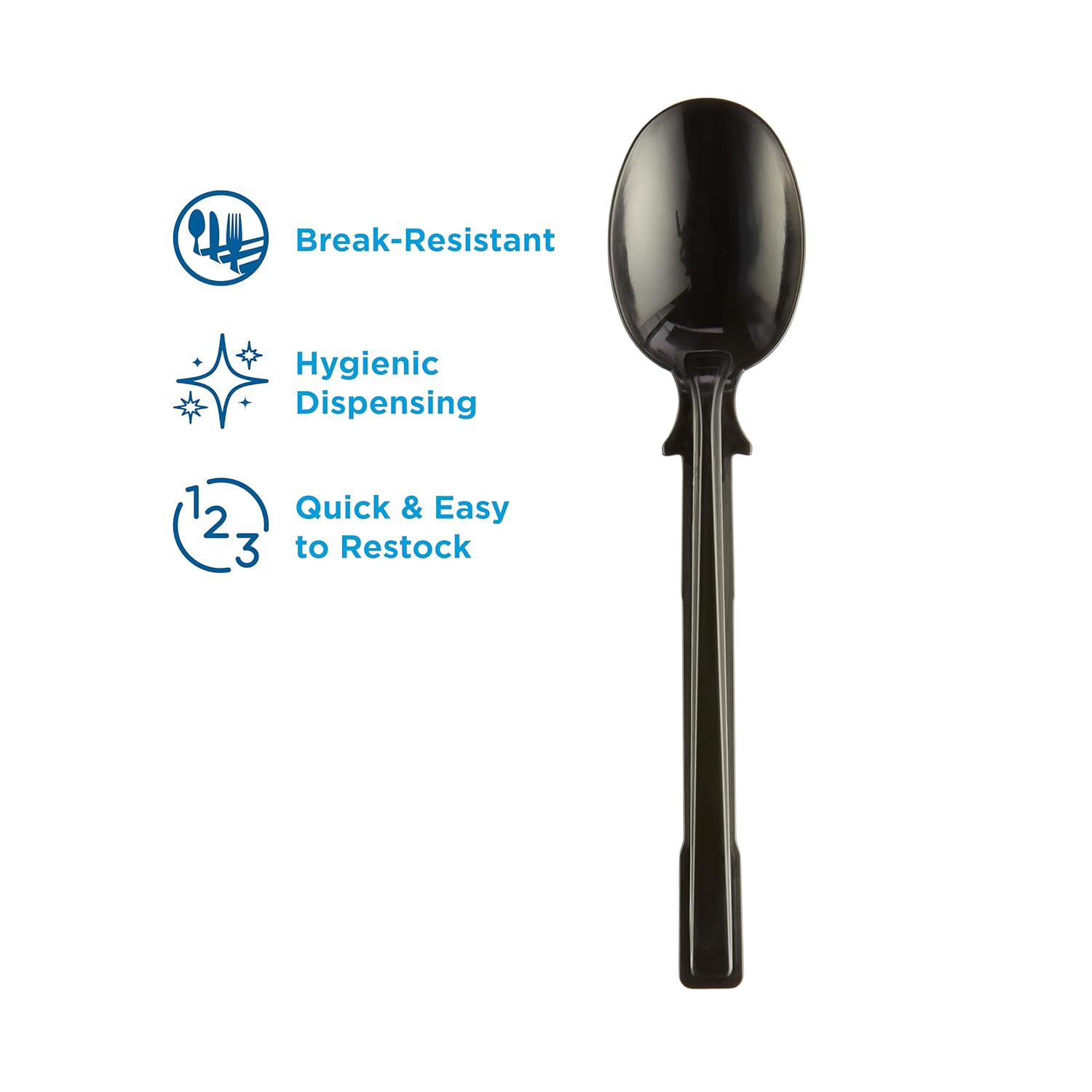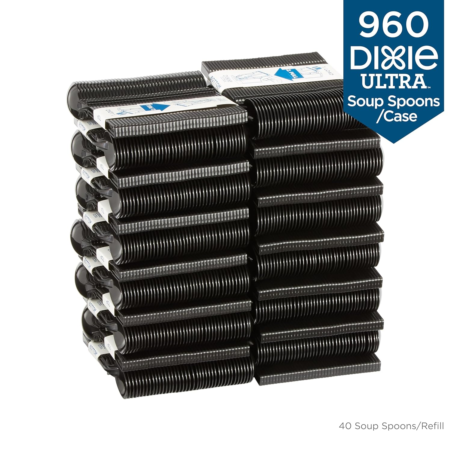 The Dixie Ultra® SmartStock® Series-T Polypropylene Disposable Plastic Soup Spoon Refill is designed for use in the Dixie Ultra® SmartStock® Series-T Tri-Tower Disposable Plastic Cutlery Dispenser (DUSSTDSP3). Pre-counted and pre-assembled SmartStock® refills make it fast and easy to restock an empty dispenser. Just pick up a new cutlery refill, slide it into the dispenser, rip and pull away the binding tape, close the door and you’re done. It’s really that simple! Dixie Ultra® SmartStock® Series-T Polypropylene Cutlery is available in Fork (DUSSPF5), Knife (DUSSPK5), Teaspoon (DUSSPT5) and Soup Spoon (DUSSPS5) refills, as well as Polystyrene Fork (DUSSF5), Knife (DUSSK5), Teaspoon (DUSST5) and Soup Spoon (DUSSS5) refills.