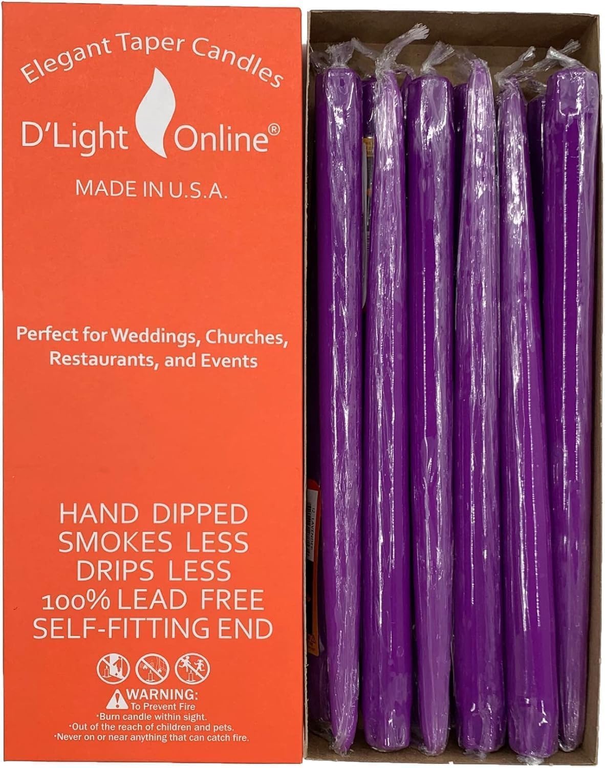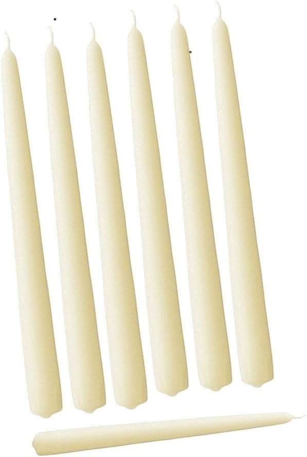 Unscented taper candles. These taper are beautifully designed and colored. They add a touch of elegance to any gathering! Due to the nature of the dipping process involved in making taper candles, base size may vary. IMPORTANT NOTICE: These candles are considered "drip resistant" under ideal conditions, but as with any candle, they may drip if NOT placed in the ideal conditions. Ideal Conditions for Burning Candles: What normally causes a candle to drip is: 1. Draft (even the slightest draft with cause a candles to drip) 2. Burning candles close together (if too close, the flame from one candle will melt away another candles side and cause it to drip) 3. Candles leaning in an angle Size: 12" height x 7/8" diameter . Case of 144 candles. USES: These Taper candles are perfect for: everyday use, wedding, events, aromatherapy, mood lighting, ambiance lighting, and emergency lighting.