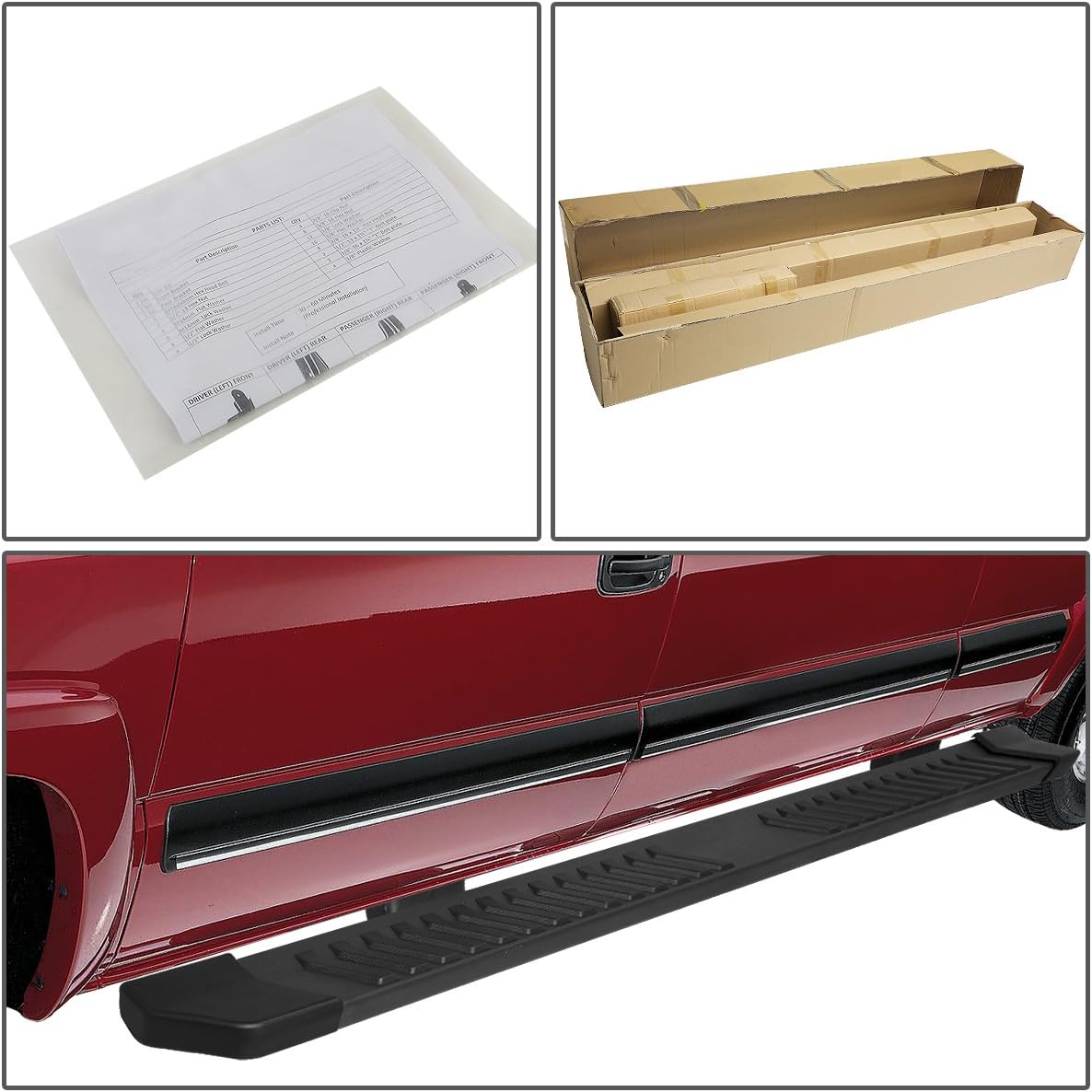 | Included Components | 2 X Extruded Aluminum Running BoardsMounting BracketsHardware as Shown in the Picture Above |
