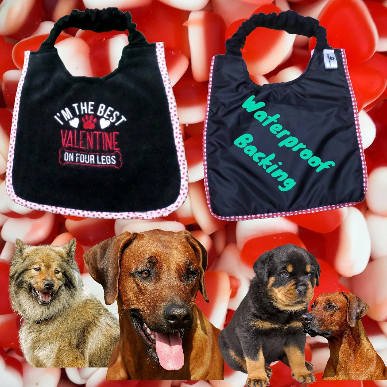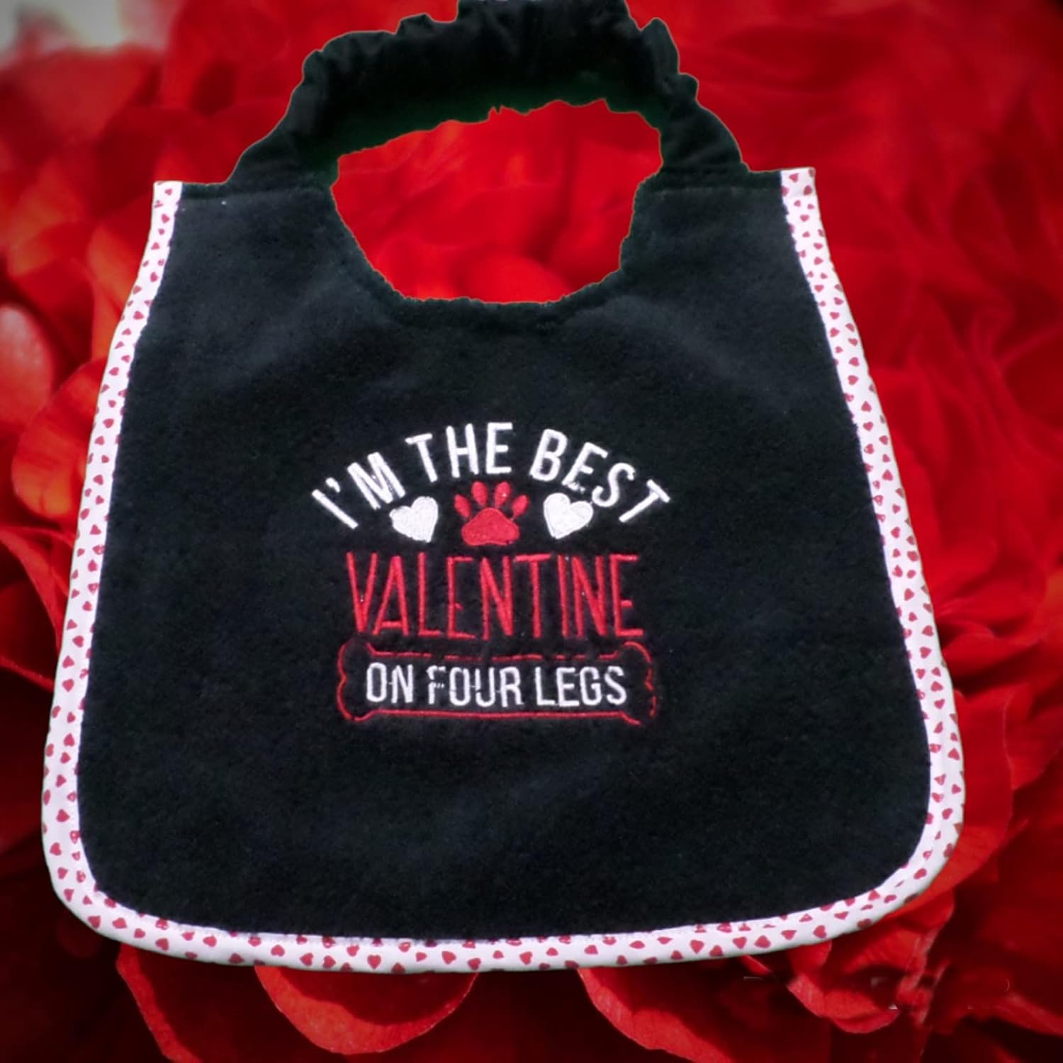 Introducing Our New Valentine Dog Bib - Show Your Love All Year Round! Do you adore your furry companion? Of course, you do! That's why we're thrilled to present our brand new Valentine Dog Bib, designed with love to keep your beloved pet looking and feeling their best. And guess what? This bib is perfect for more than just Valentine's Day โ because our love for our dogs knows no bounds! ๐พ Lovely Design: Our dog bib features a charming design with two-color embroidery, making your pup look even more adorable. ๐ง๏ธ 100% Waterproof: With a waterproof backing, this bib ensures that your furry friend stays clean and dry no matter what messes they get into. ๐งผ Easy to Clean: Cleaning up is a breeze! This bib is both machine and hand washable, so you can keep it fresh and ready for action. ๐ Comfort and Fit: The adjustable neck strap ensures a comfortable and secure fit for dogs of all sizes, and the lovely edging complements your chosen colors. โค๏ธ Made with Love: Just like you, we consider our dogs part of the family. That's why every bib is crafted with great care and comfort because we love your dogs too! โ Tested for Quality: These bibs have been thoroughly tested, and we only put them on the market when we were 100% satisfied with the product's quality and design. ๐จ Customization: Explore our other designs, or personalize your own bib with two embroidery colors and your preferred size. We even accept custom orders, so send us your requests, and we'll be delighted to assist. ๐ Satisfaction Guaranteed: Our greatest joy is seeing happy faces โ both yours and your dogs! We're dedicated to ensuring you and your furry friend are delighted with our products. Please note that this particular bib cannot be personalized with a name, but we have other designs that offer that option. Create a personalized bib with your dog's name, choose from a variety of designs, and select your preferred bib size for the perfect fit. Give your dog the best with our Valentine Dog