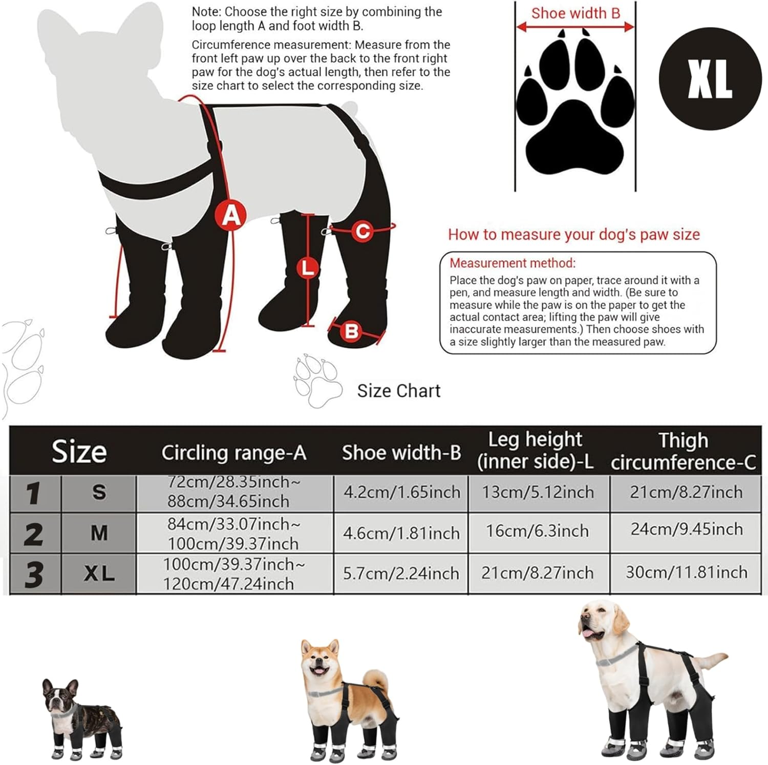 Description: These dog boots with suspenders combine waterproof and dirt-resistant materials with a thoughtfully adjustable design to protect your dog's paws during all types of outdoor adventures. Featuring anti-slip soles, the boots enhance traction on slippery or uneven terrain, reducing the risk of injury. The suspenders and adjustable straps provide a secure, personalized fit, preventing boots from falling off or causing discomfort, suitable for various dog sizes and breeds. Crafted with lightweight, breathable fabrics, these boots ensure comfort without compromising durability, making them perfect for walking, hiking, or rainy days. Whether shielding paws from rain, mud, or rough surfaces, these boots help keep your pet clean and safe, allowing them to enjoy outdoor activities confidently and comfortably all year round. Features:. Dog Boots with Suspenders. -Color: Black. -Material: Rubber. -Size: XL. Note:Manual measurement, please allow slight errors on size.The colors may exist slight difference due to different screens. Package Including 1 x Dog Boots with Suspenders