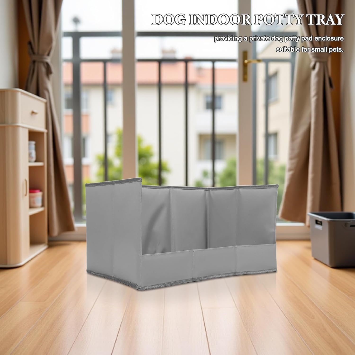 DescriptionCreate a pet-friendly space with this foldable pet litter box enclosure, featuring a splash shield for dog litter box splash-proof guard. The dog pad holder tray enclosure uses a gray minimalist design to blend with home décor, ensuring the pet potty box enclosure keeps contained while helping small dogs establish healthy toilet routines.Features-Color:Grey-Material:Polyester-Size:57.00X38.60X30.50cm/22.44X15.20X12.01in-Portable and Space-Saving: The dog toilet fence comes in a foldable design, making the dog indoor potty box effortless to set up, and transport as your living environment changes-Waterproof Technology: Splash shield for dog toilet tray to keep from reaching the floor, maintaining a clean and healthy space for dogs and owners alike-Efficient Solution: The puppy potty tray enclosure works seamlessly for training pet potty, ensuring your pet's indoor bathroom stays fresh and manageable-Contemporary Finish: Pet litter box shield features a fashionable color, blending well with any modern interior and suiting all personal decor preferences for an attractive dog potty area enclosure-Ideal for Small Breeds: Engineered for puppies and small dogs, the dog indoor potty tray enclosure offers them a private and comfortable place to pee indoors, making potty training less stressful for both pet and owner